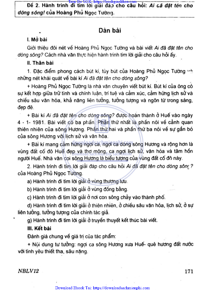 ĐỀ 2 – HÀNH TRÌNH ĐI TÌM LỜI GIẢI ĐÁP CHO CÂU HỎI: AI ĐÃ ĐẶT TÊN CHO DÒNG SÔNG? CỦA HOÀNG PHỦ NGỌC TƯỜNG
