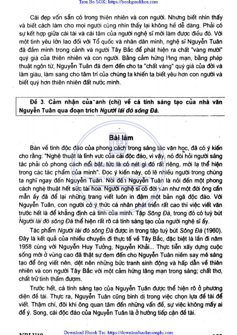 Những Bài Làm Văn Tiêu Biểu 12 – Nguyễn Xuân Lạc