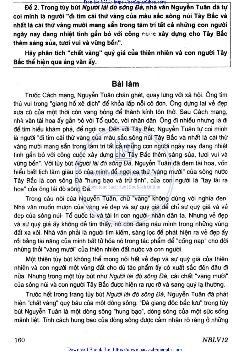 ĐỀ 2 – PHÂN TÍCH “CHẤT VÀNG” CỦA THIÊN NHIÊN VÀ CON NGƯỜI TÂY BẮC THỂ HIỆN QUA NGƯỜI LÁI ĐÒ SÔNG ĐÀ