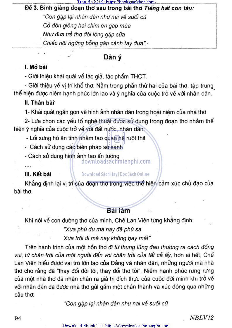 ĐỀ 3 – BÌNH GIẢNG ĐOẠN THƠ: “CON GẶP LẠI NHÂN DÂN NHƯ NAI VỀ SUỐI CŨ… BỖNG GẶP CÁNH TAY ĐƯA”