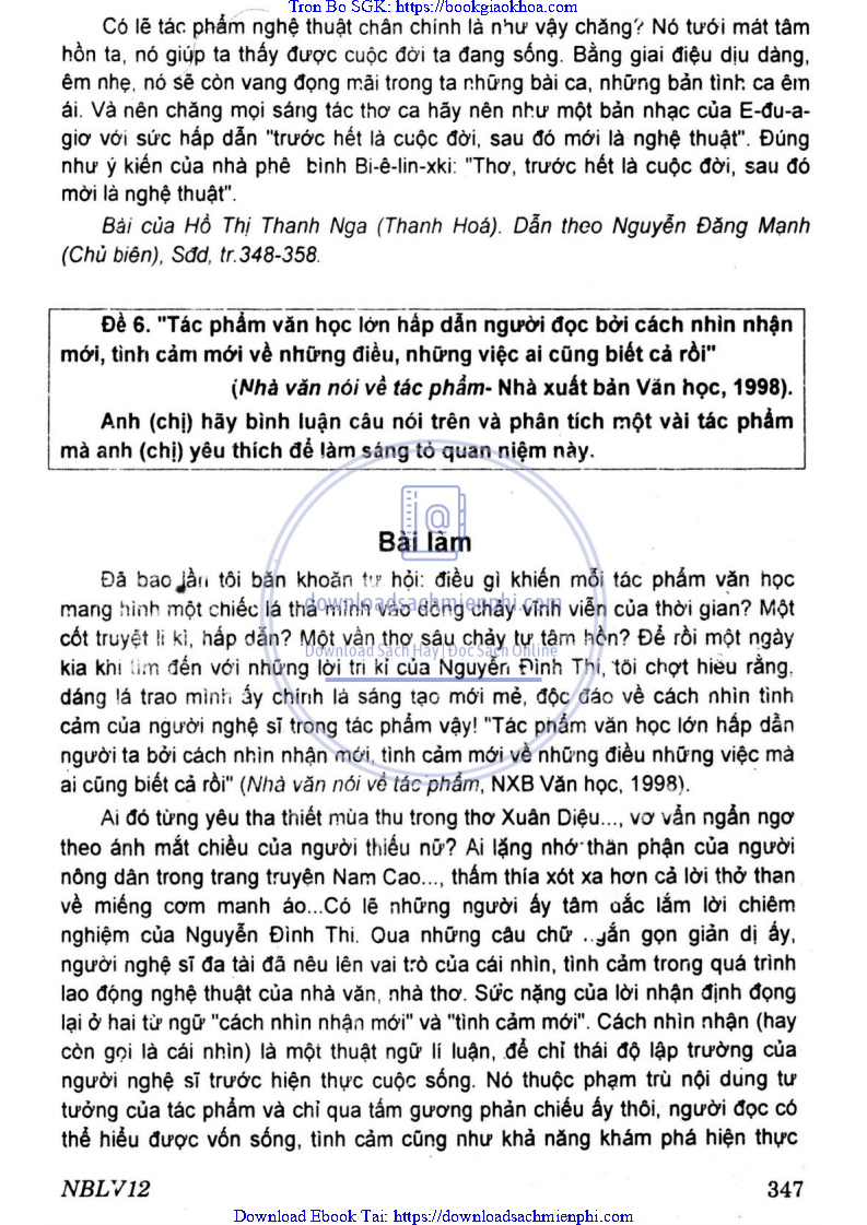 ĐỀ 6 – BÌNH LUẬN VỀ “CÁCH NHÌN NHẬN MỚI, TÌNH CẢM MỚI” TRONG VĂN HỌC