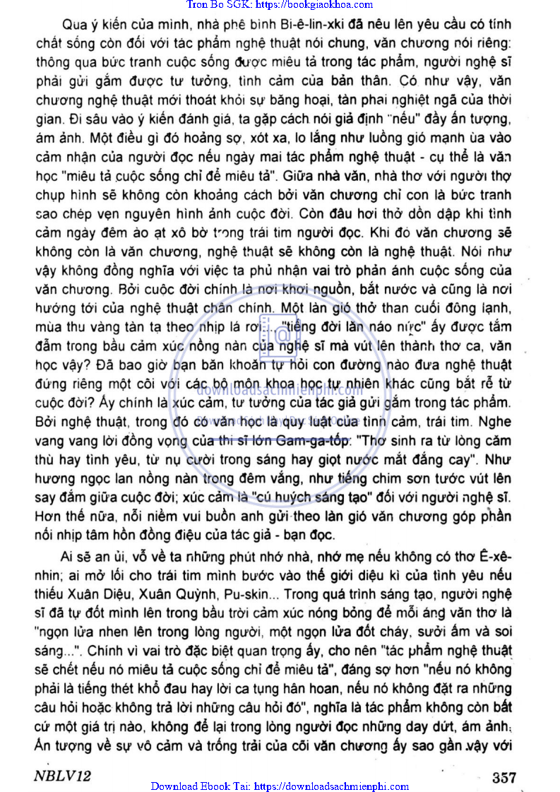 ĐỀ 7 – BÌNH LUẬN CÂU NÓI CỦA BI-Ê-LIN-XKI: “TÁC PHẨM NGHỆ THUẬT SẼ CHẾT ĐI NẾU NÓ MIÊU TẢ CUỘC SỐNG CHỈ ĐỂ MIÊU TẢ”