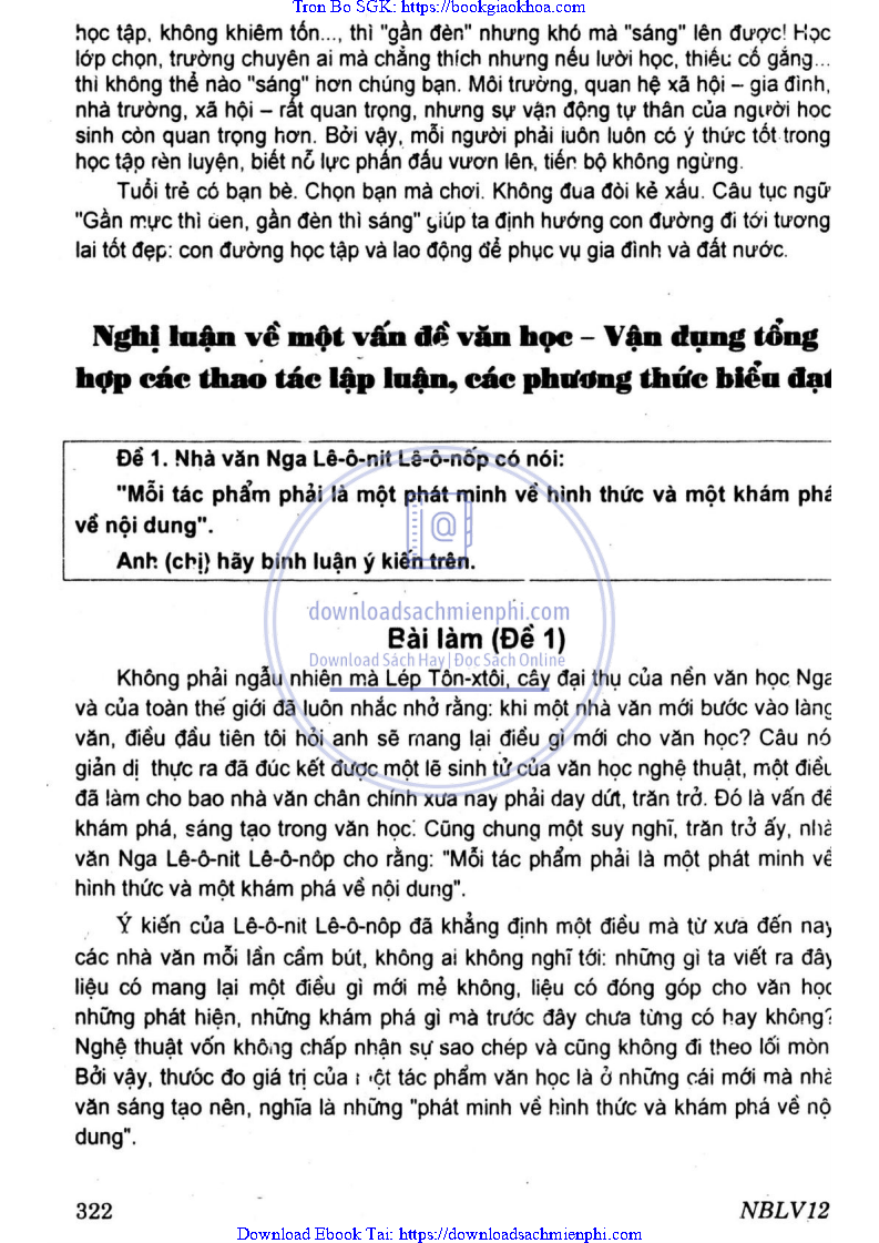 NGHỊ LUẬN VỀ MỘT VẤN ĐỀ VĂN HỌC – VẬN DỤNG TỔNG HỢP CÁC THAO TÁC LẬP LUẬN, CÁC PHƯƠNG THỨC BIỂU ĐẠT