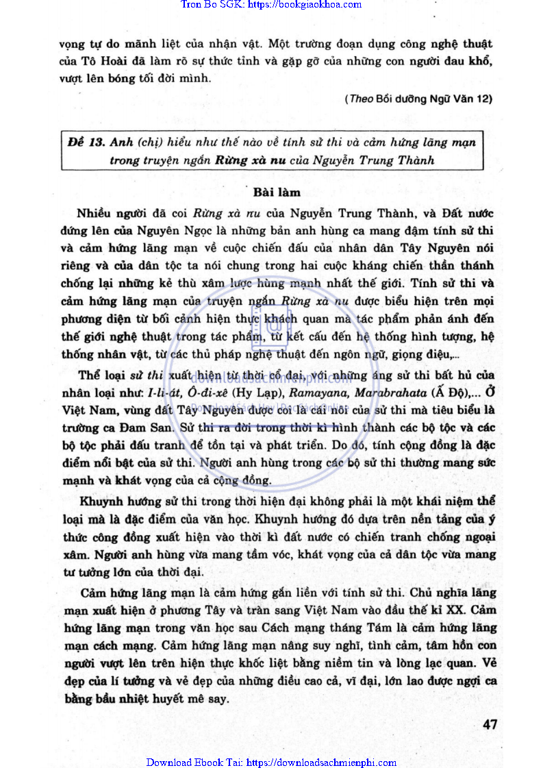 ĐỀ 13. ANH (CHỊ) HIỂU NHƯ THÉ NÀO VỀ TÍNH SỬ THI VÀ CẢM HỨNG LÃNG MẠN TRONG TRUYỆN NGẮN RỪNG XÀ NU CỦA NGUYỄN TRUNG THÀNH