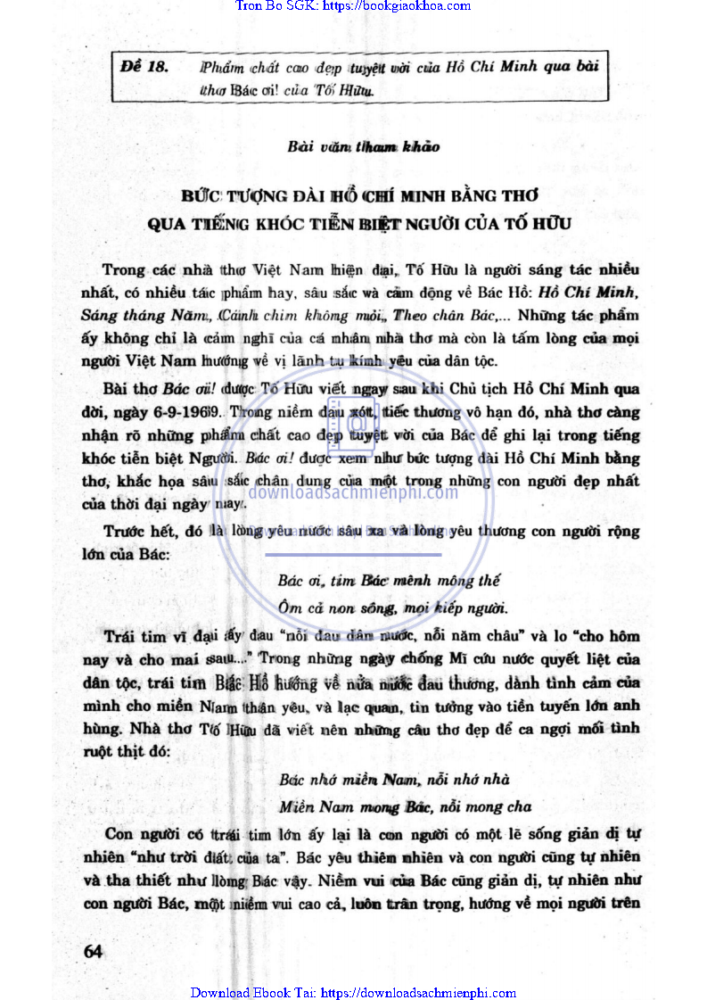 ĐỀ 18. PHẨM CHẤT CAO ĐẸP TUYỆT VỜI CỦA HỒ CHÍ MINH QUA BÀI THƠ BÁC ƠI! CỦA TỐ HỮU