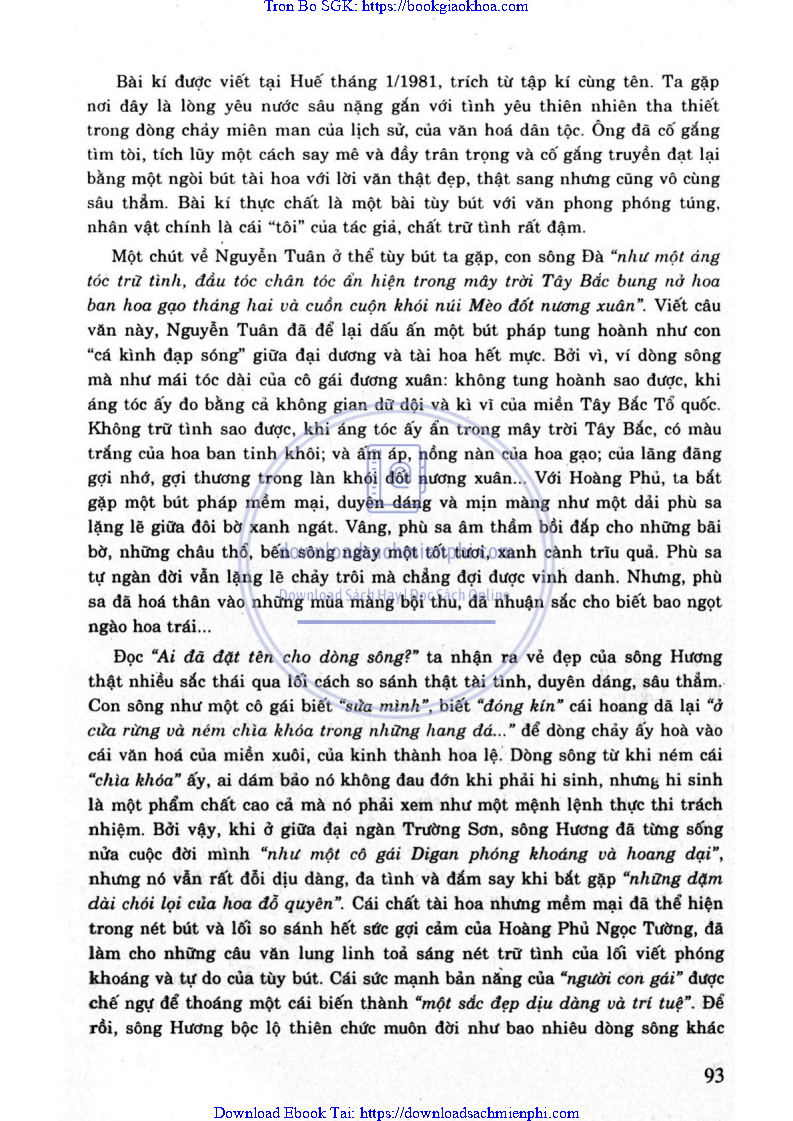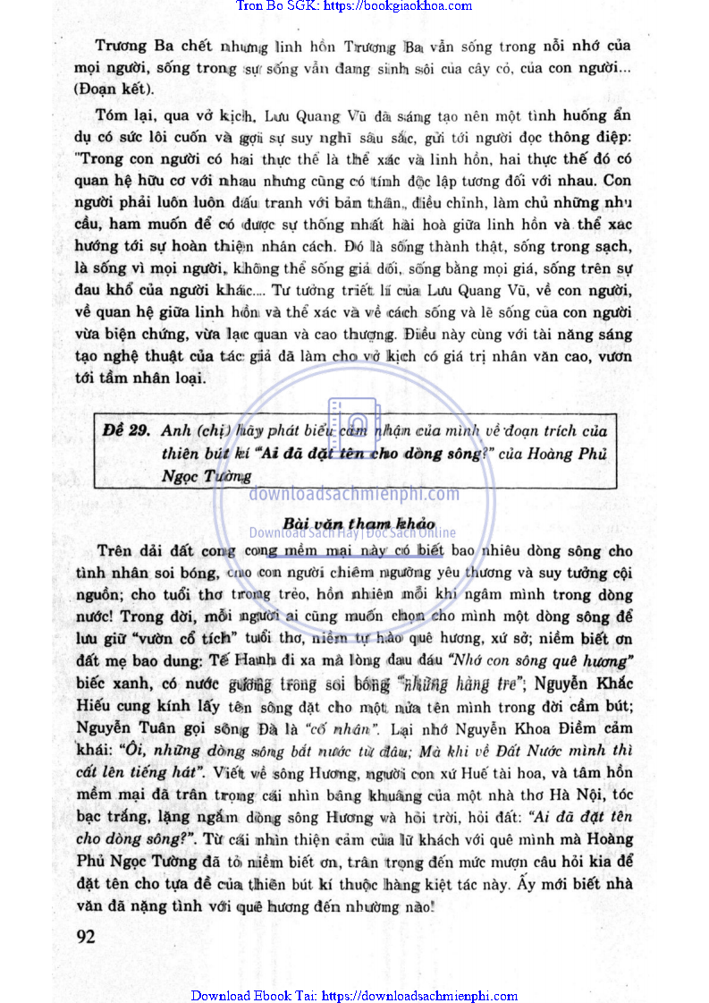 ĐỀ 29. ANH (CHỊ) HÃY PHÁT BIỂU CẢM NHẬN CỦA MÌNH VỀ ĐOẠN TRÍCH THIÊN BÚT KÍ “AI ĐÃ ĐẶT TÊN CHO DÒNG SÔNG” CỦA HOÀNG PHỦ NGỌC TƯỜNG