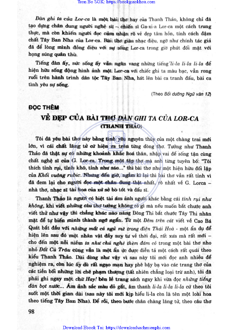 - ĐỀ 16. SÁNG TẠO MỚI CỦA THANH THẢO TRONG (ĐÀN GHI TA CỦA LORCA)