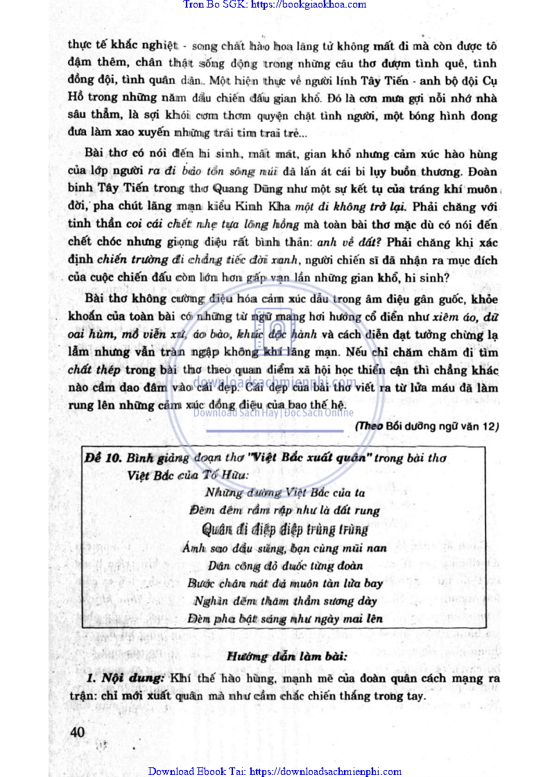 - ĐỀ 10. BÌNH GIẢNG ĐOẠN THƠ “VIỆT BẮC XUẤT QUÂN” TRONG BÀI THƠ VIỆT BẮC CỦA TỐ HỮU