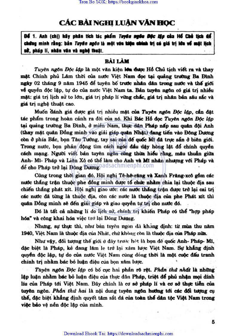 - ĐÊ 1: ANH (CHỊ) HÃY PHÂN TÍCH TÁC PHẨM TUYÊN NGÔN ĐỘC LẬP CỦA HỒ CHỦ TỊCH ĐỂ CHỨNG MINH RẰNG: BẢN TUYÊN NGÔN LÀ MỘT VĂN KIỆN CHÍNH TRỊ CÓ GIÁ TRỊ LỚN VỀ MẶT LỊCH SỬ, PHÁP LÍ, NHÂN VĂN VÀ NGHỆ THUẬT.
