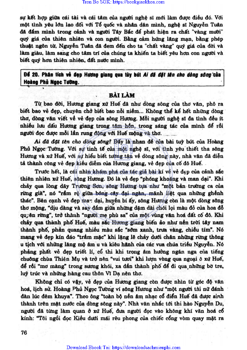 - ĐỀ 20: PHÂN TÍCH VẺ ĐẸP HƯƠNG GIANG QUA TÙY BÚT AI ĐÃ ĐẶT TÊN CHO DÒNG SÔNG CỦA HOÀNG PHỦ NGỌC TƯỜNG.