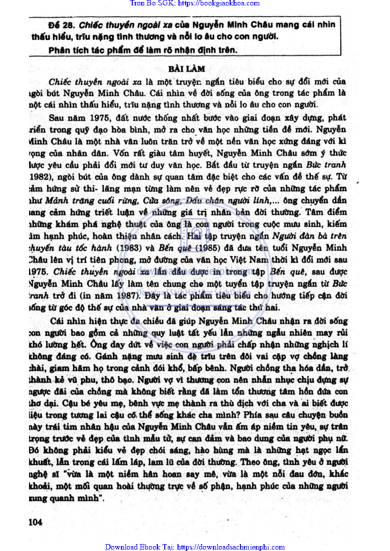 ĐỀ 28: CHIẾC THUYỀN NGOÀI XA CỦA NGUYỄN MINH CHÂU MANG CÁI NHÌN THẤU HIỂU, TRĨU NẶNG TÌNH THƯƠNG VÀ NỖI LO ÂU CHO CON NGƯỜI. PHÂN TÍCH TÁC PHẨM ĐỂ LÀM RÕ NHẬN ĐỊNH TRÊN.