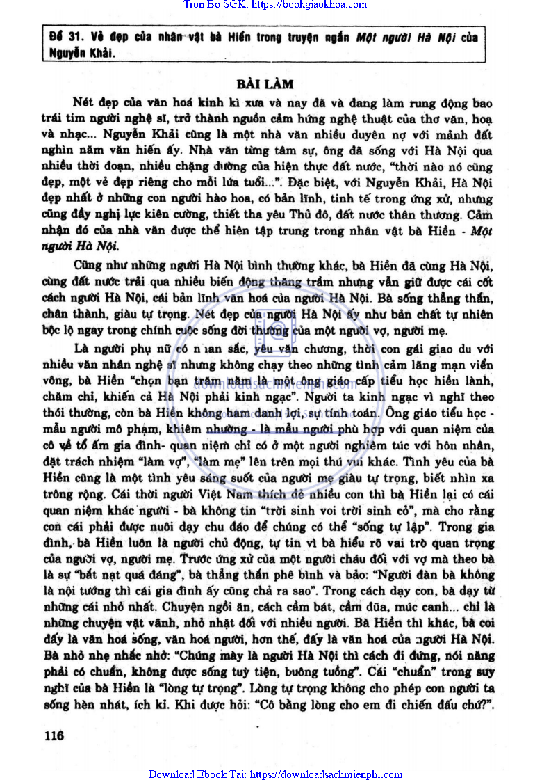 - ĐỀ 31: VẺ ĐẸP CỦA NHÂN VẬT BÀ HIỀN TRONG TRUYỆN NGẮN MỘT NGƯỜI HÀ NỘI CỦA NGUYỄN KHẢI.