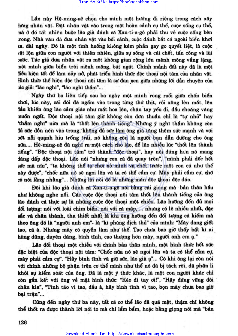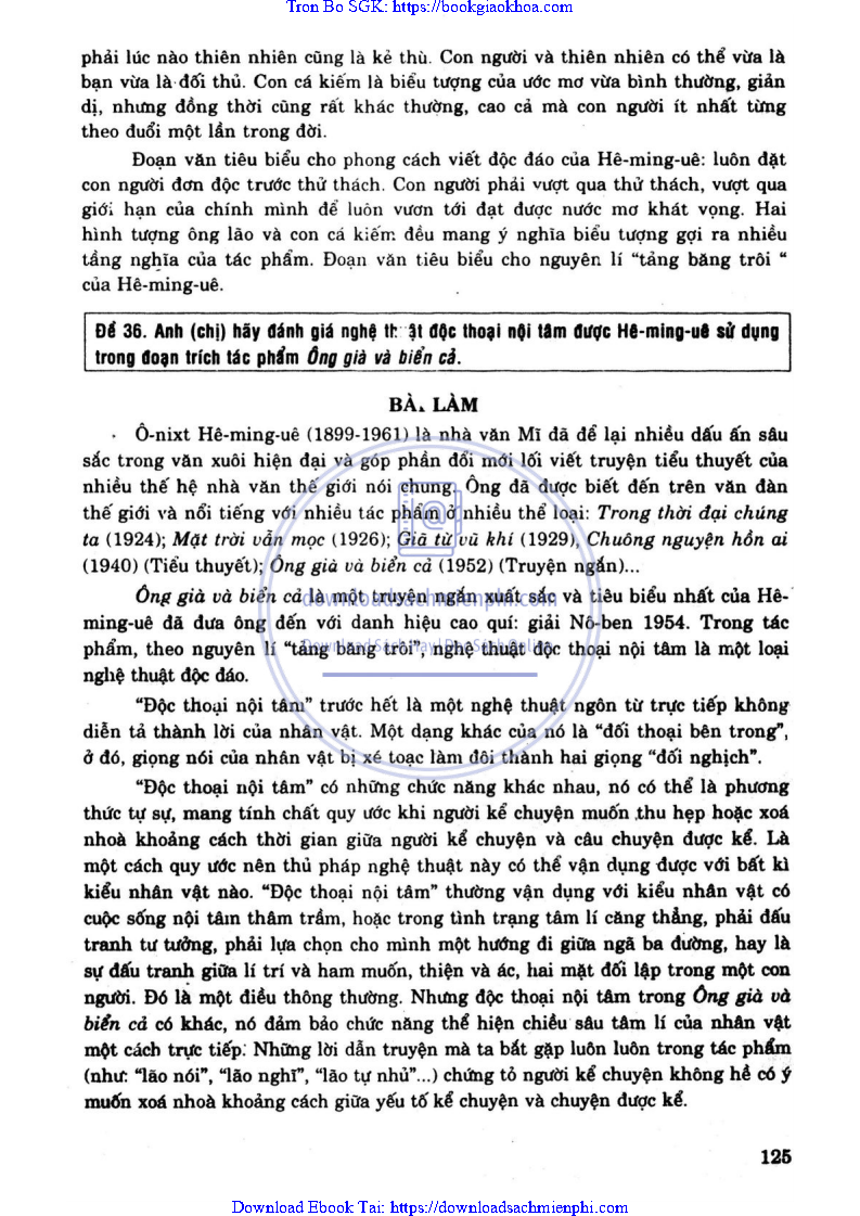 ĐỀ 36: ANH (CHỊ) HÃY ĐÁNH GIÁ NGHỆ THUẬT ĐỘC THOẠI NỘI TÂM ĐƯỢC HÊ-MING-UÊ SỬ DỤNG TRONG TRÍCH TÁC PHẨM ÔNG GIÀ VÀ BIỂN CẢ.