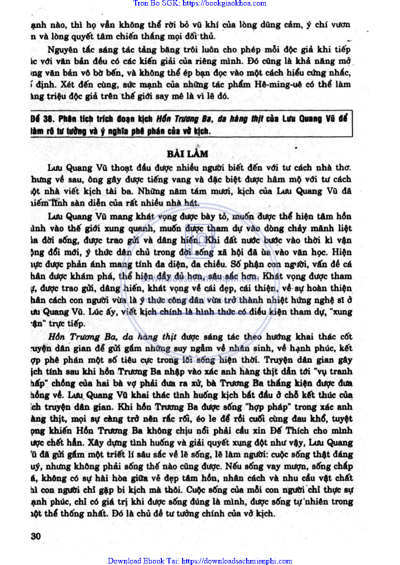 ĐỀ 38: PHÂN TÍCH TRÍCH ĐOẠN KỊCH HỒN TRƯƠNG BA, DA HÀNG THỊT CỦA LƯU QUANG VŨ ĐỂ LÀM RÕ TƯ TƯỞNG VÀ Ý NGHĨA PHÊ PHÁN CỦA VỞ KỊCH.