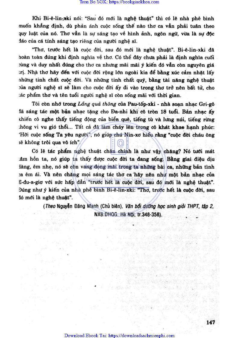 - ĐỀ 41: BÀN VỀ THƠ, NHÀ PHÊ BÌNH VĂN HỌC NGA BI-Ê-LIN-XKI CHO RẰNG: “THƠ TRƯỚC HẾT LÀ CUỘC ĐỜI,SAU ĐÓ MỚI LÀ NGHỆ THUẬT”. ANH (CHỊ) HÃY BÌNH LUẬN Ý KIẾN TRÊN.