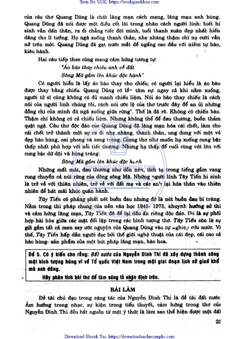 ĐỀ 5: CÓ Ý KIẾN CHO RẰNG: ĐẤT NƯỚC CỦA NGUYỄN ĐÌNH THI ĐÃ XÂY DỰNG THÀNH CÔNG MỘT HÌNH TƯỢNG HÙNG VĨ VỀ TỔ QUÓC VIỆT NAM TRONG MỘT GIAI ĐOẠN LỊCH SỬ GIAN KHỔ MÀ ANH HÙNG. HÃY PHÂN TÍCH BÀI THƠ ĐỂ LÀM SÁNG TỎ NHẬN ĐỊNH TRÊN