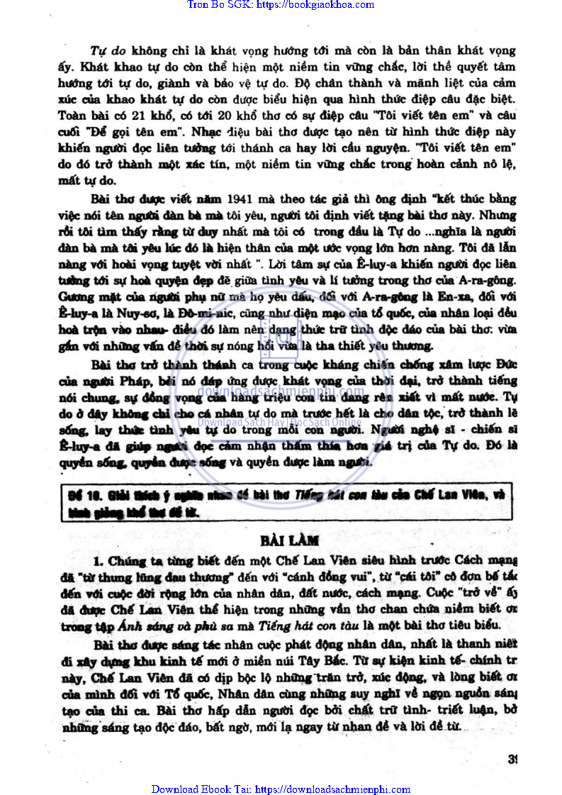 ĐỀ 9: BÀI THƠ TỰ DO CỦA P. Ê-HUY-A LÀ TIẾNG NÓI MÃNH LIỆT VỀ KHÁT VỌNG TỰ DO. PHÂN TÍCH BÀI THƠ ĐỂ CHỨNG MINH NHẬN ĐỊNH TRÊN.
