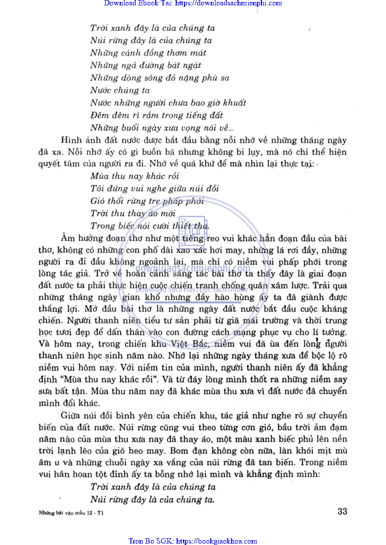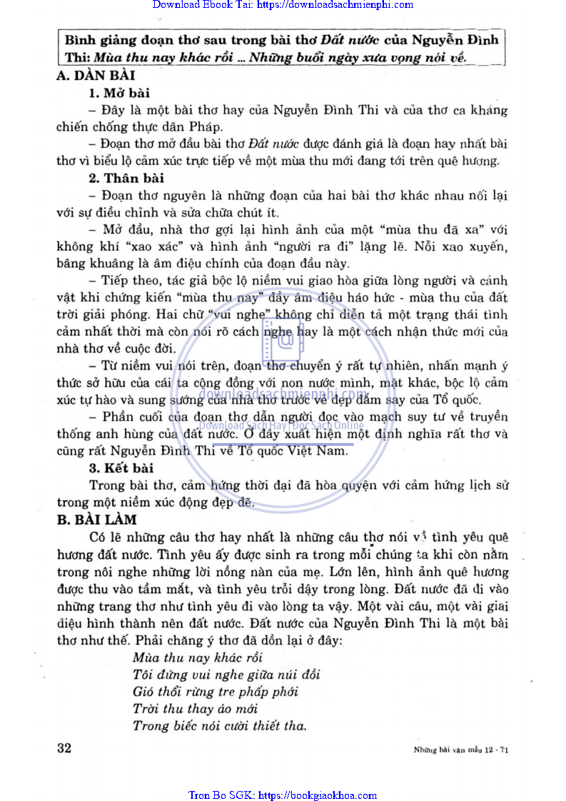 BÌNH GIẢNG ĐOẠN THƠ SAU TRONG BÀI THƠ ĐẤT NƯỚC CỦA NGUYỄN ĐÌNH THI: MÙA THU NAY KHÁC RỒI … NHỮNG BUỔI NGÀY XƯA VỌNG NÓI VỀ.