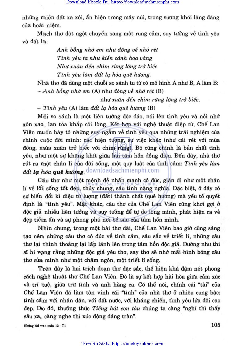 BÌNH GIẢNG ĐOẠN THƠ SAU TRONG BÀI TIẾNG HÁT CON TÀU CỦA CHẾ LAN VIÊN: NHỚ BẢN SƯƠNG GIĂNG, NHỚ ĐÈO MÂY PHỦ …HÓA QUÊ HƯƠNG