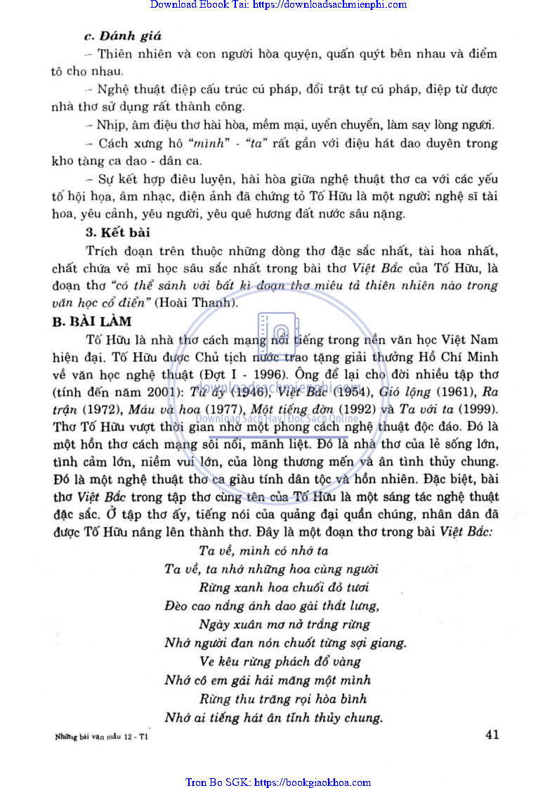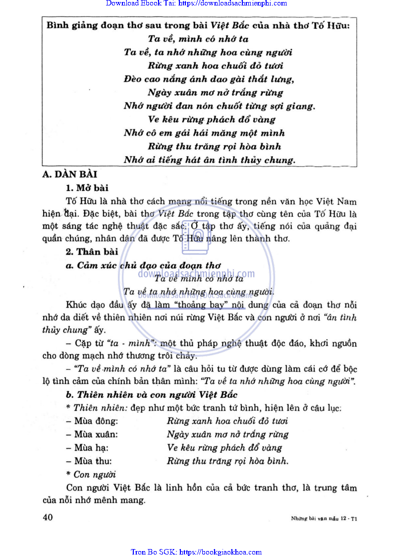 - PHÂN TÍCH ĐOẠN THƠ SAU TRONG BÀI VIỆT BẮC CỦA TỐ HỮU: TA VỀ, MÌNH CÓ NHỚ TA … NHỚ AI TIẾNG HÁT ÂN TÌNH THỦY CHUNG
