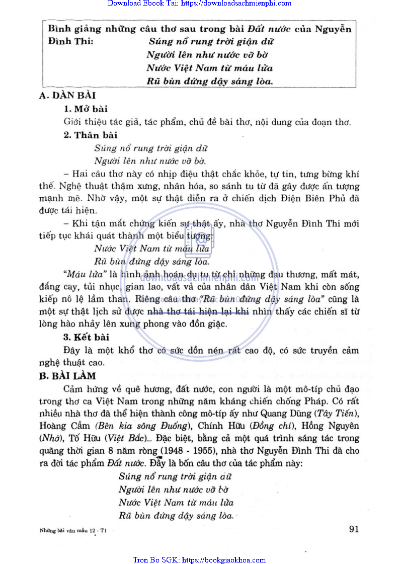 - PHÂN TÍCH BÀI THƠ ĐẤT NƯỚC CỦA NGUYỄN ĐÌNH THI ĐỂ LÀM RÕ NHỮNG CẢM HỨNG CỦA NHÀ THƠ