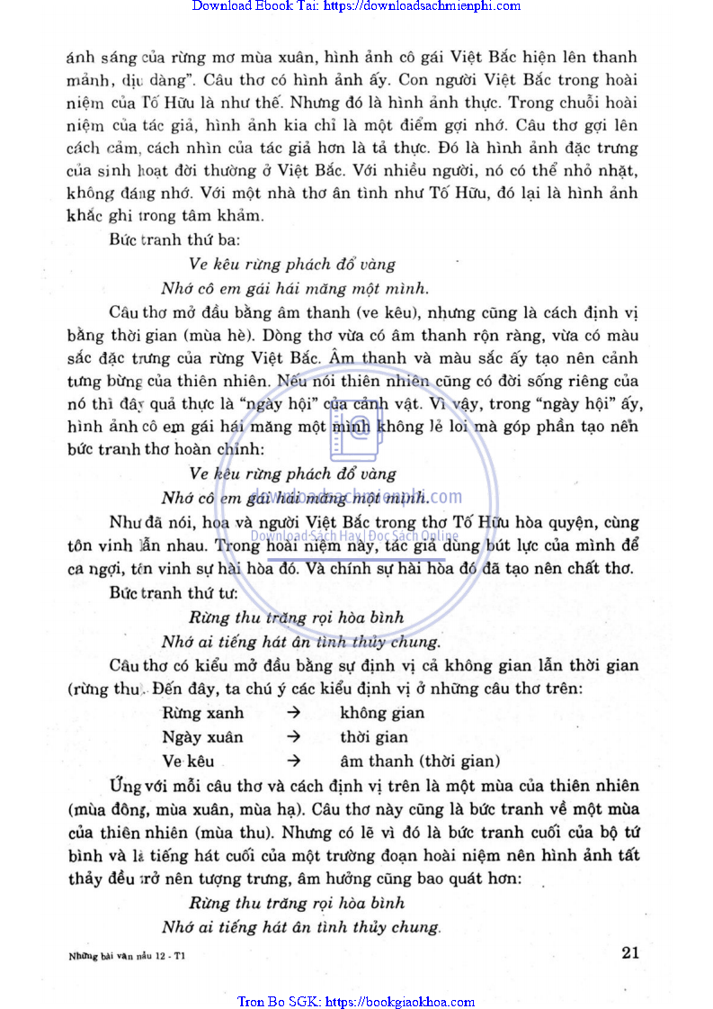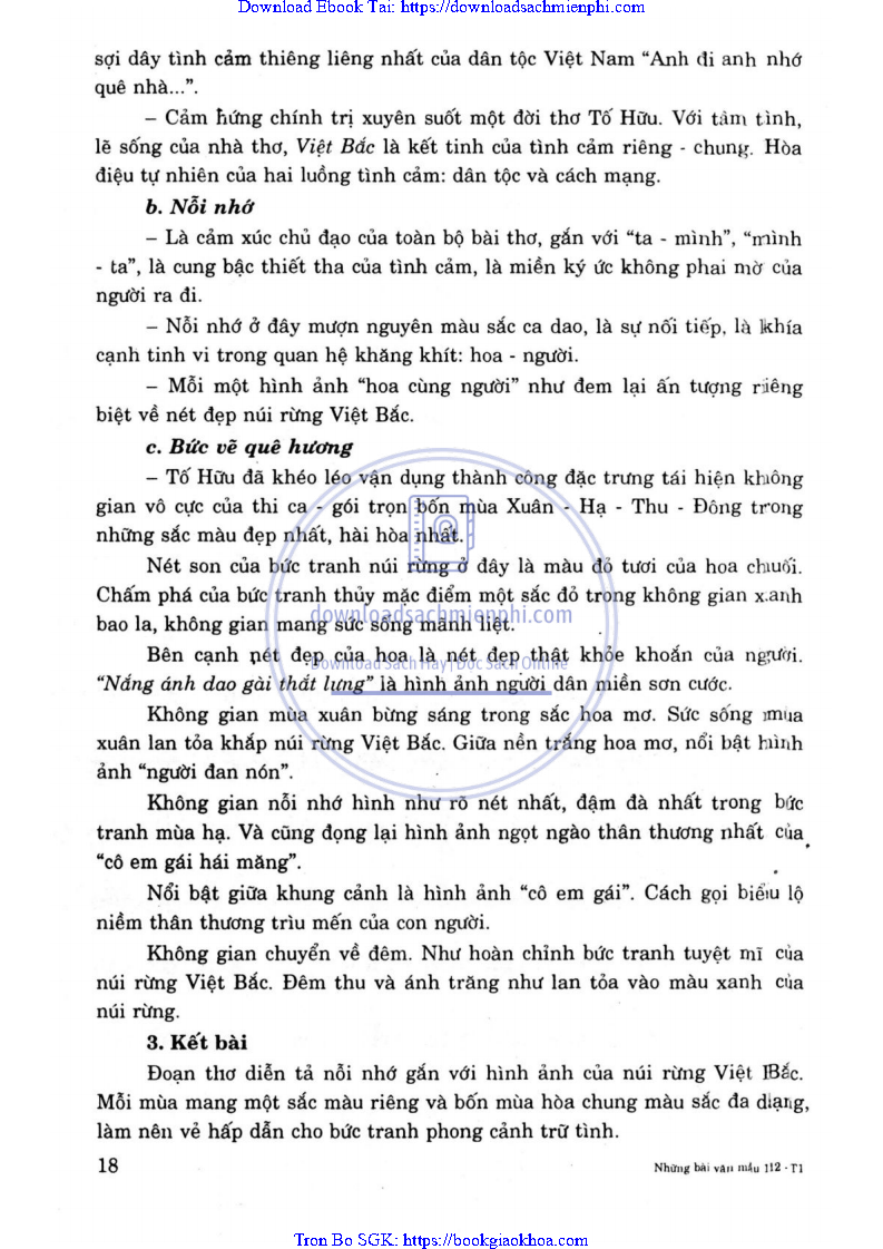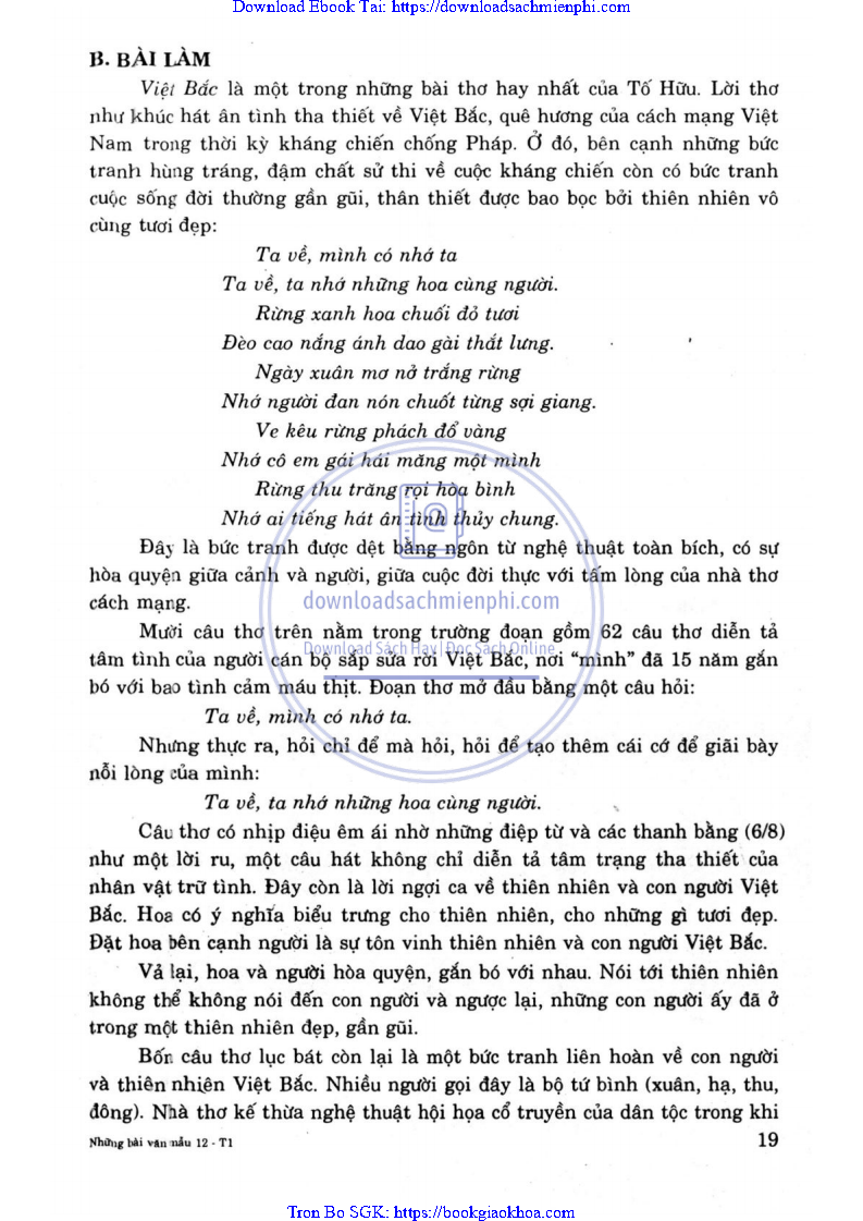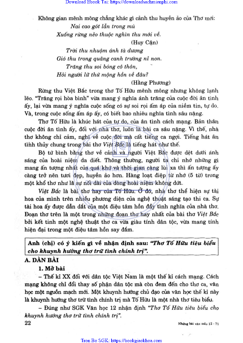 PHÂN TÍCH ĐOẠN THƠ SAU TRONG BÀI VIỆT BẮC CỦA TỐ HỮU: TA VỀ, MÌNH CÓ NHỚ TA … NHỚ AI TIẾNG HÁT ÂN TÌNH THỦY CHUNG