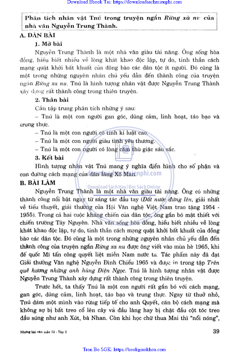 PHÂN TÍCH NHÂN VẬT TNÚ TRONG TRUYỆN NGẮN RỪNG XÀ NU CỦA NHÀ VĂN NGUYỄN TRUNG THÀNH