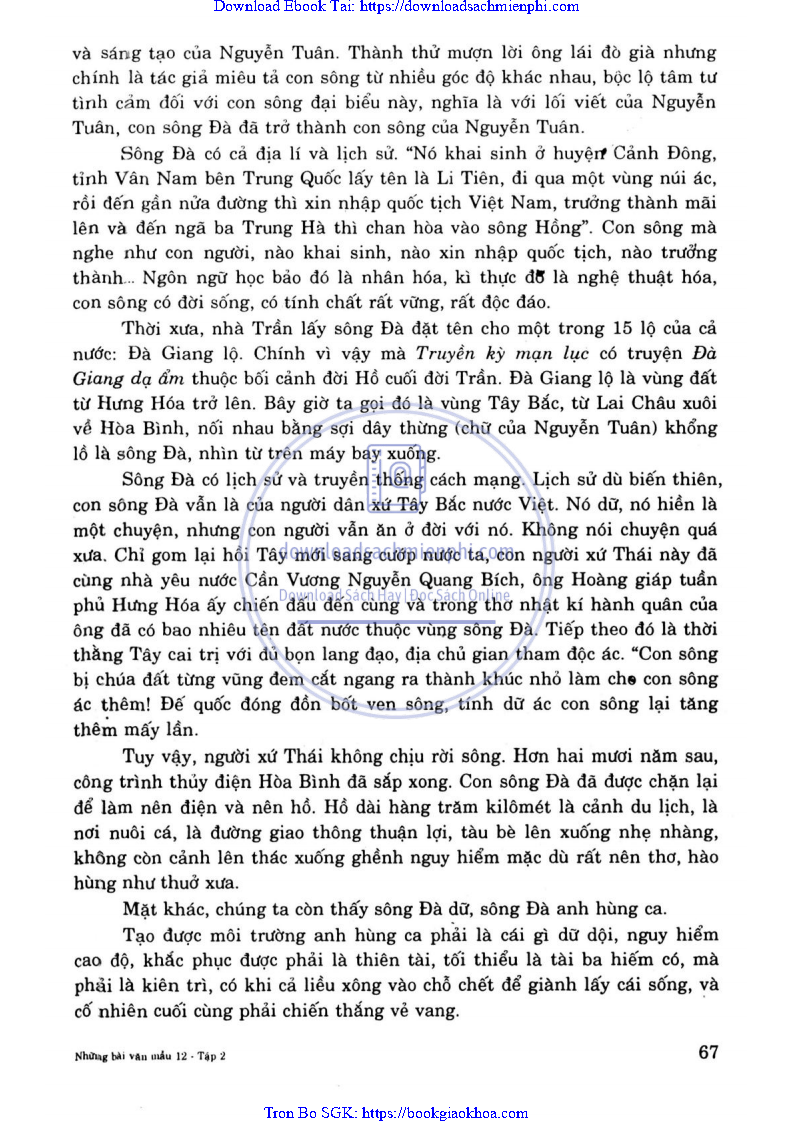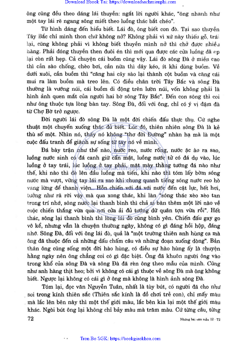 - BÌNH GIẢNG ĐOẠN VĂN SAU ĐÂY TRÍCH TRONG TÙY BÚT NGƯỜI LÁI ĐÒ SỐNG ĐÀ CỦA NGUYỄN TUÂN: “THUYỀN TÔI TRÔI TRÊN SÔNG ĐÀ …THẮT MÌNH DÂY CỔ ĐIỂN TRIÊN DÒNG TRÊN”