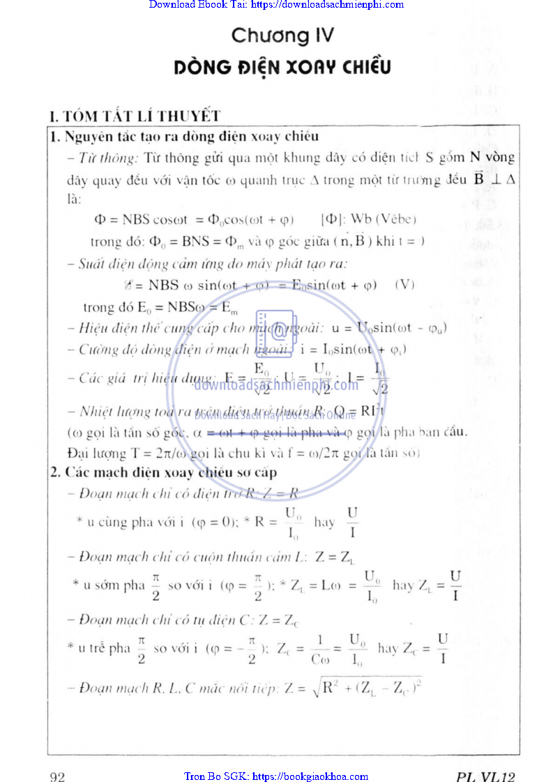CHƯƠNG IV. DÒNG ĐIỆN XOAY CHIỀU