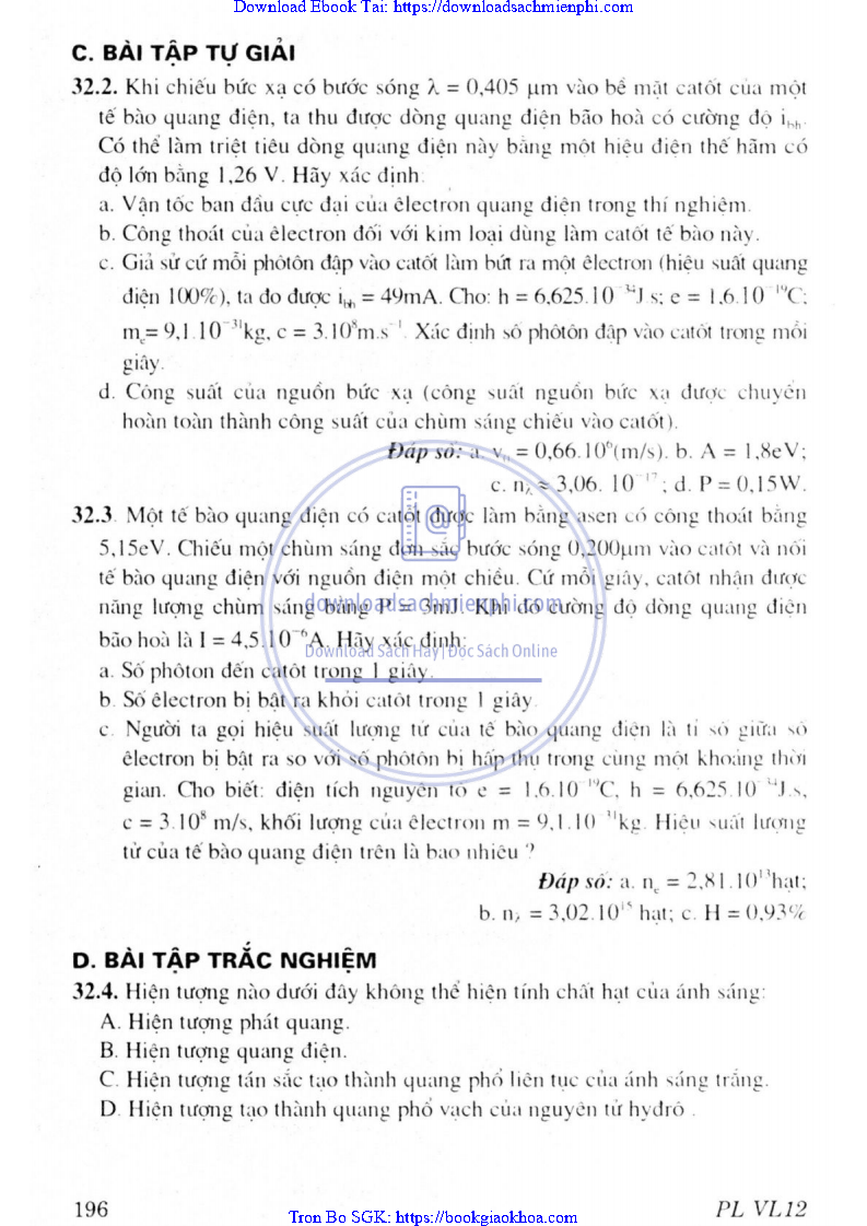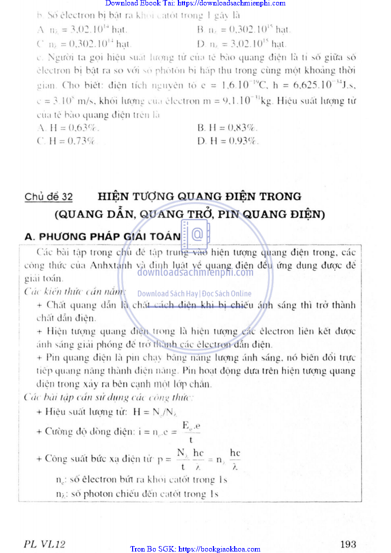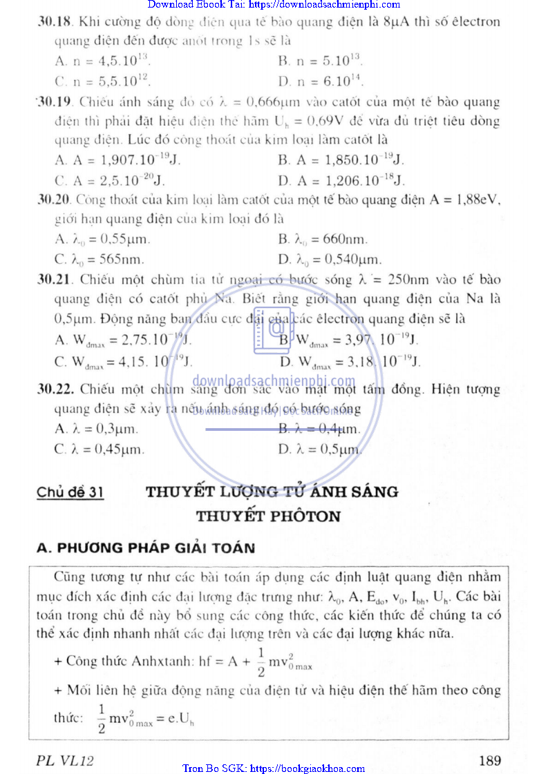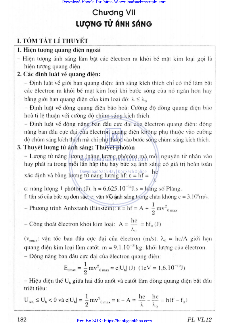 CHƯƠNG VII. LƯỢNG TỬ ÁNH SÁNG