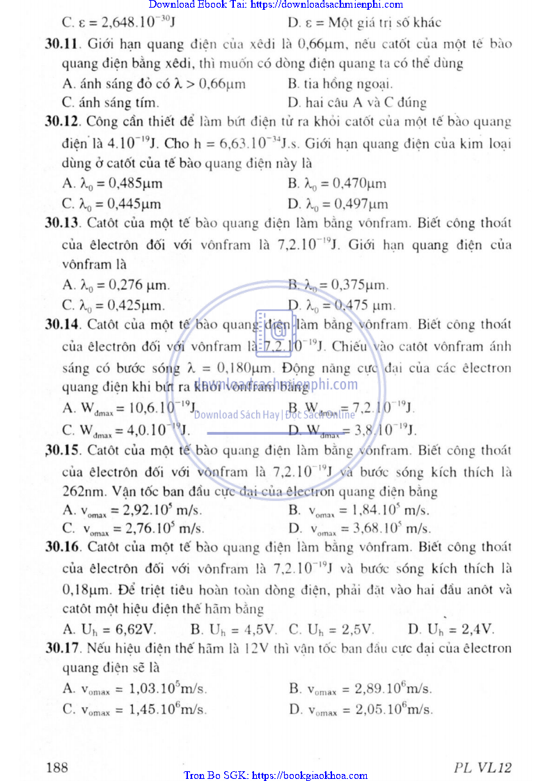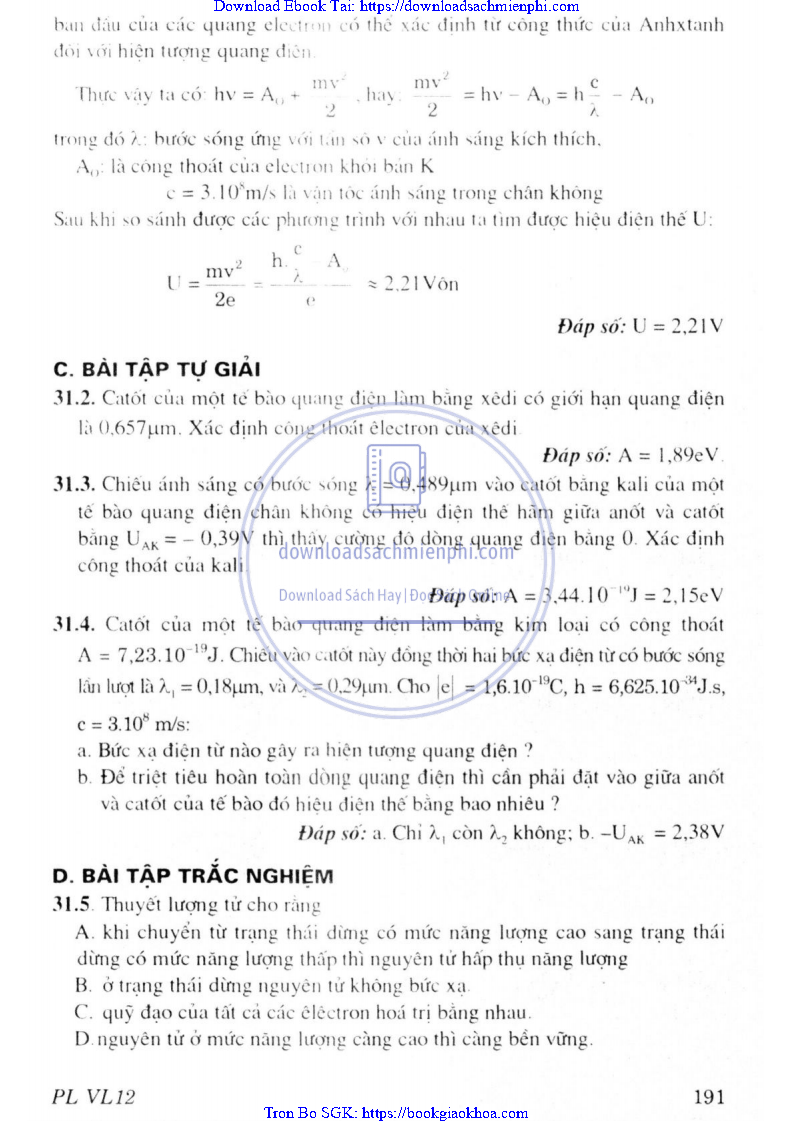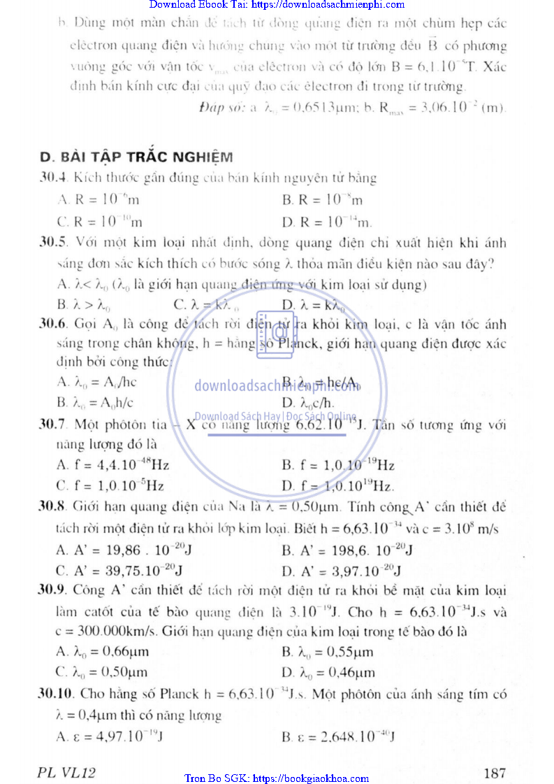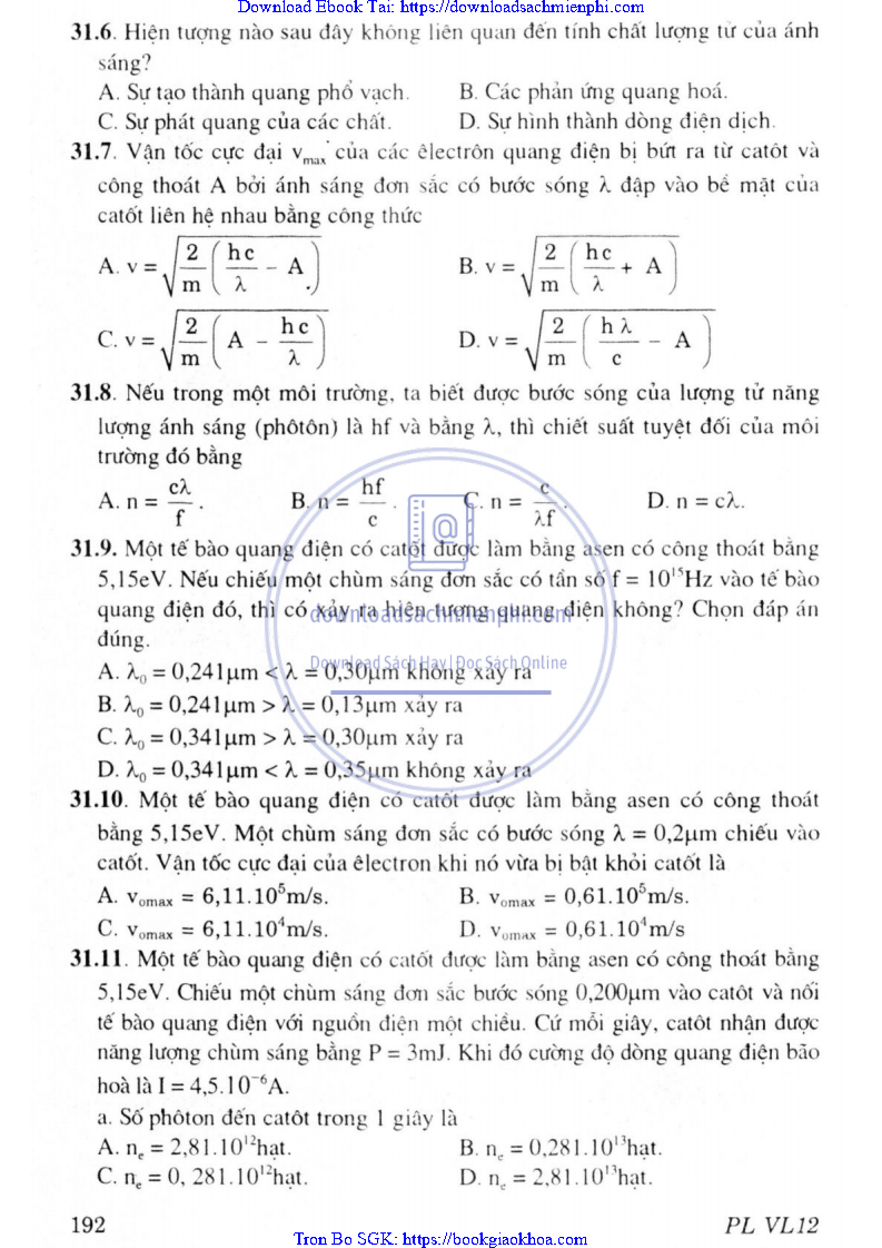 CHƯƠNG VII. LƯỢNG TỬ ÁNH SÁNG