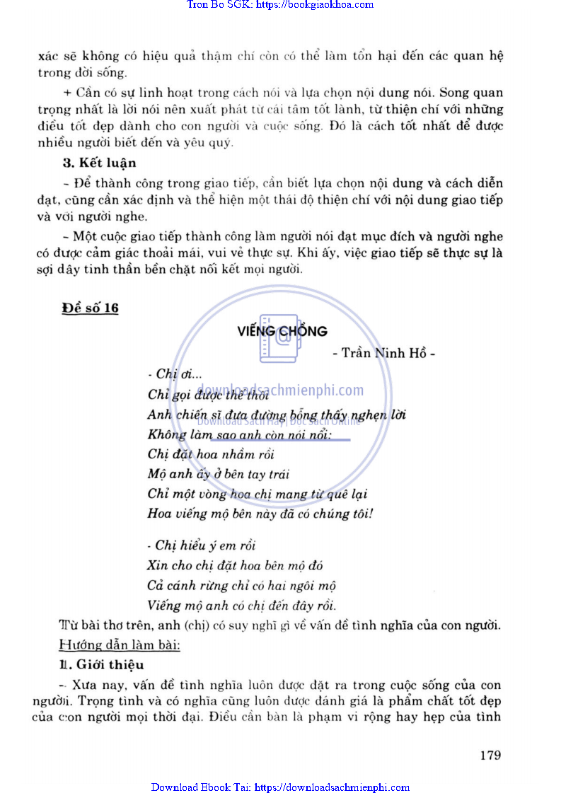 ĐỀ 16. TỪ BÀI THƠ VIẾNG CHỒNG – TRẦN NINH HỒ, ANH (CHỊ) CÓ SUY NGHĨ GÌ VỀ VẤN ĐỀ TÌNH NGHĨA CỦA CON NGƯỜI