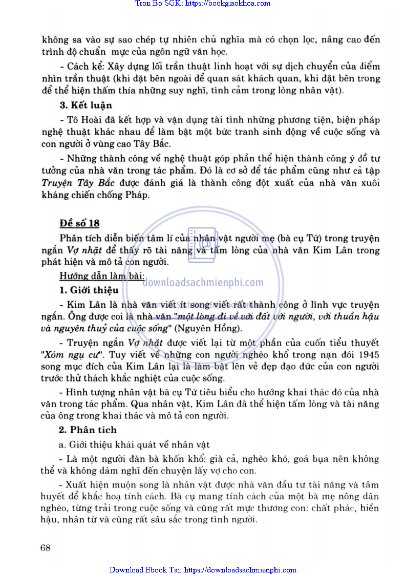 - ĐỀ 18. PHÂN TÍCH DIỄN BIẾN TÂM LÍ CỦA NHÂN VẬT NGƯỜI MẸ (BÀ CỤ TỨ) TRONG TRUYỆN NGẮN VỢ NHẶT ĐỂ THẤY RÕ TÀI NĂNG VÀ TẤM LÒNG CỦA NHÀ VĂN KIM LÂN TRONG PHÁT HIỆN VÀ MÔ TẢ CON NGƯỜI