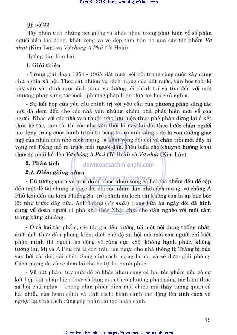 ĐỀ 22. HÃY PHÂN TÍCH NHỮNG NÉT GIỐNG VÀ KHÁC NHAU TRONG PHÁT HIỆN VỀ SỐ PHẬN NGƯỜI DÂN LAO ĐỘNG, KHÁT VỌNG VÀ VẺ ĐẸP TÂM HỒN HỌ QUA CÁC TÁC PHẨM VỌE NHẶT – KIM LÂN VÀ VỢ CHỒNG A PHỦ – TÔ HOÀI