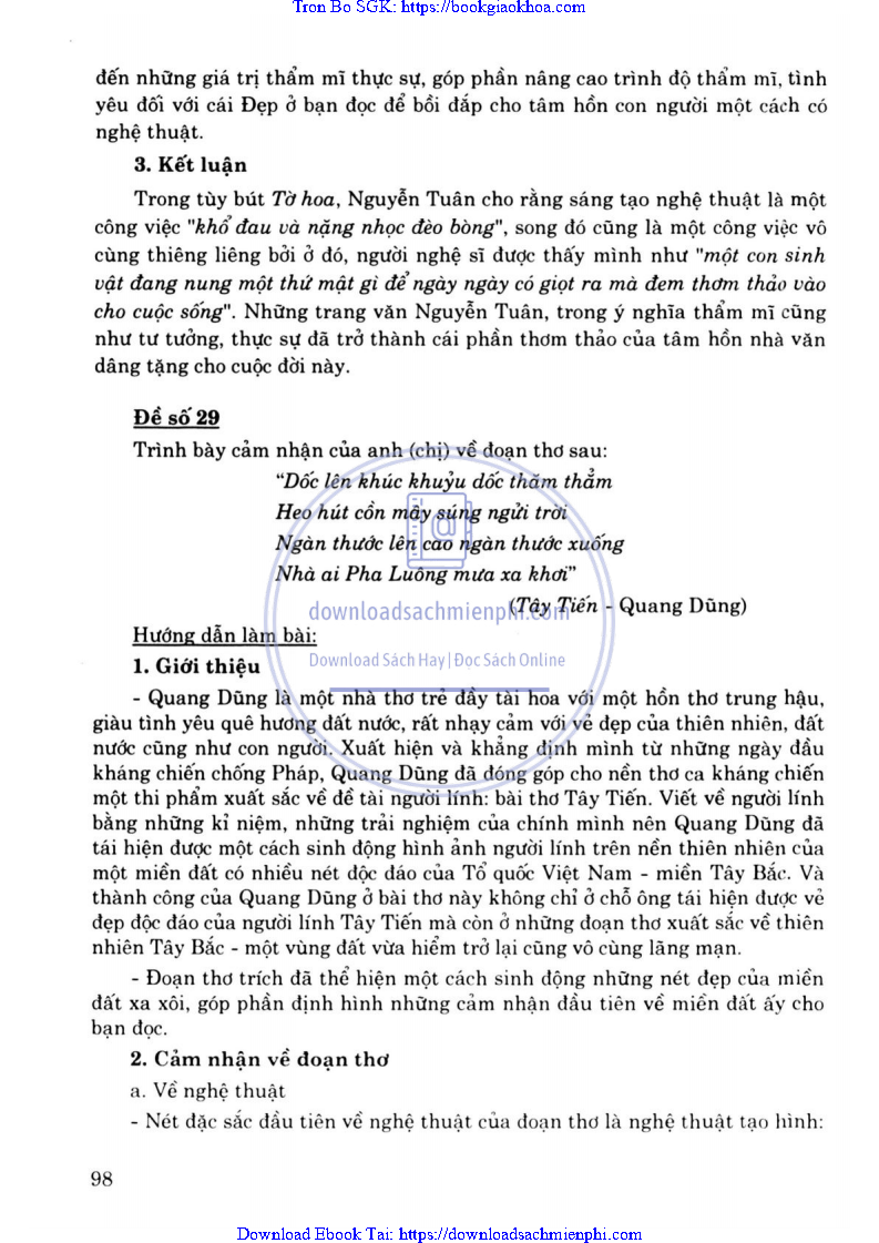 - ĐỀ 29. TRÌNH BÀY CẢM NHẬN CỦA ANH (CHỊ) VỀ ĐOẠN THƠ … TRONG BÀI TÂY TIẾN – QUANG DŨNG