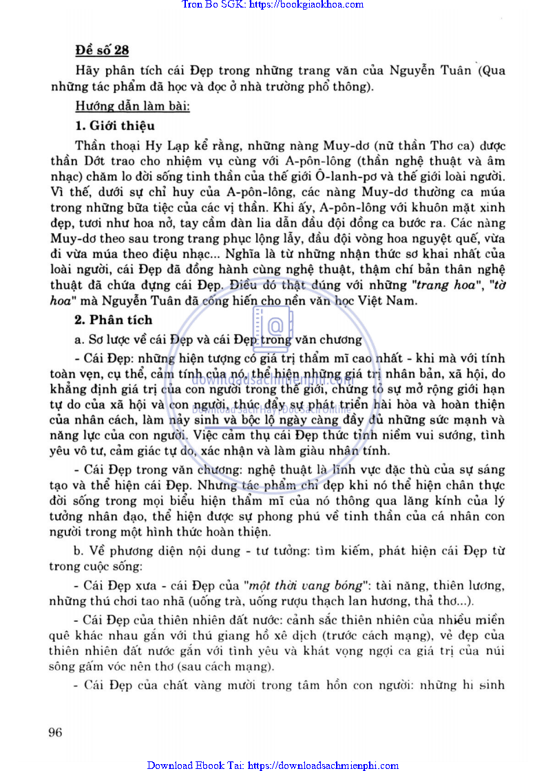 ĐỀ 28. HÃY PHÂN TÍCH CÁI ĐẸP TRONG NHỮNG TRANG VĂN CỦA NGUYỄN TUÂN (QUA NHỮNG TẮC PHẨM ĐÃ HỌC VÀ ĐỌC Ở NHÀ TRƯỢNG PHỔ THÔNG)