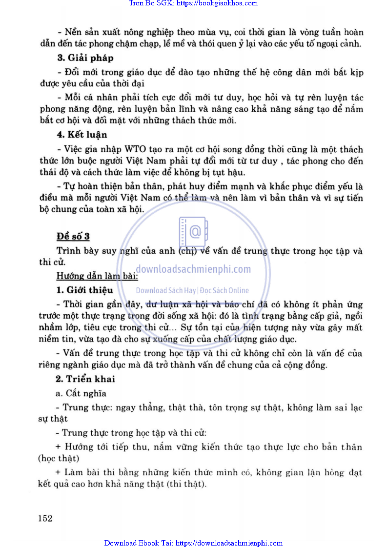 - ĐỀ 3. TRÌNH BÀY SUY NGHĨ CỦA ANH (CHỊ) VỀ VẤN ĐỀ TRUNG THỰC TRONG HỌC TẬP VÀ THI CỬ