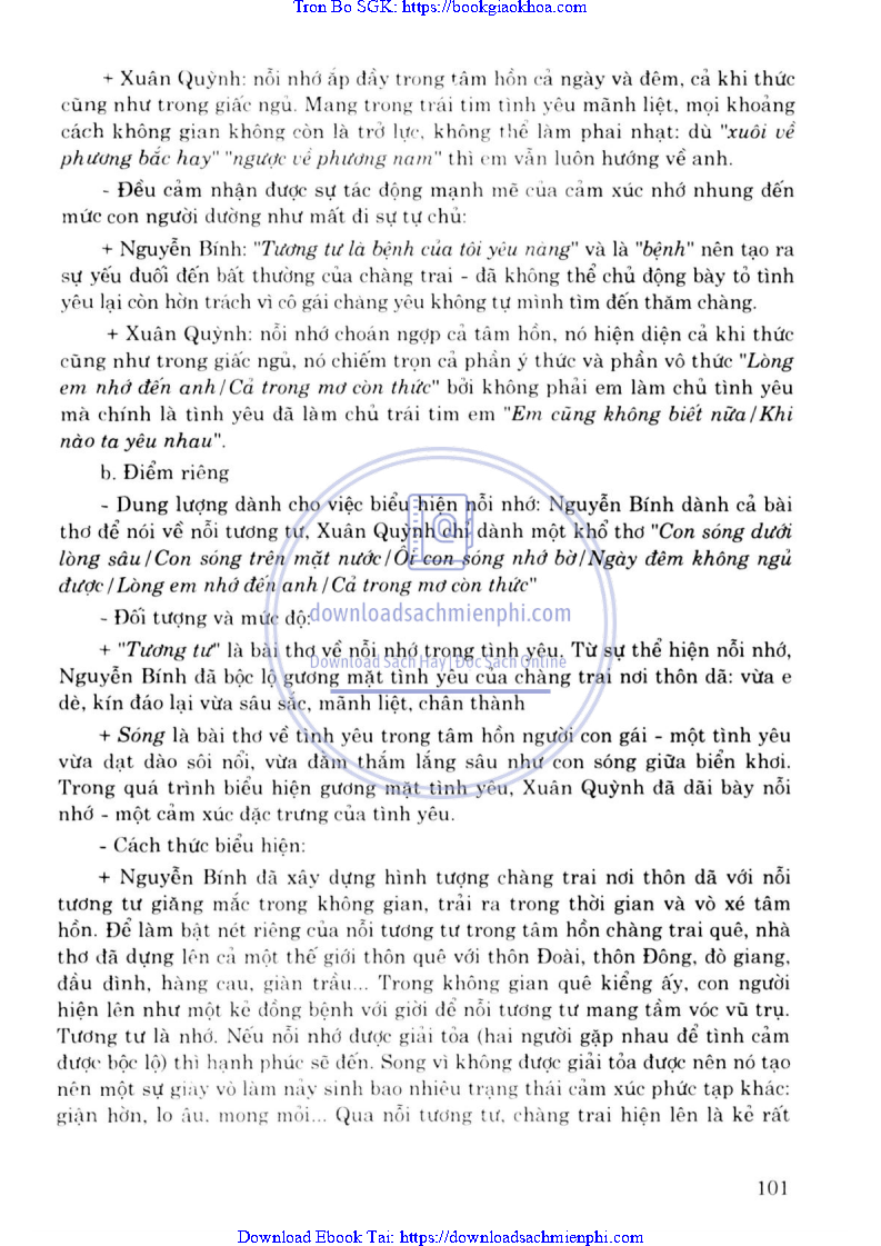 ĐỀ 30. SO SÁNH SỰ THỂ HIỆN CỦA NỔI NHỚ TRONG TÌNH YÊU CỦA HAI BÀI THƠ TƯƠNG TƯ – NGUYỄN BÍNH VÀ SÓNG – XUÂN QUỲNH