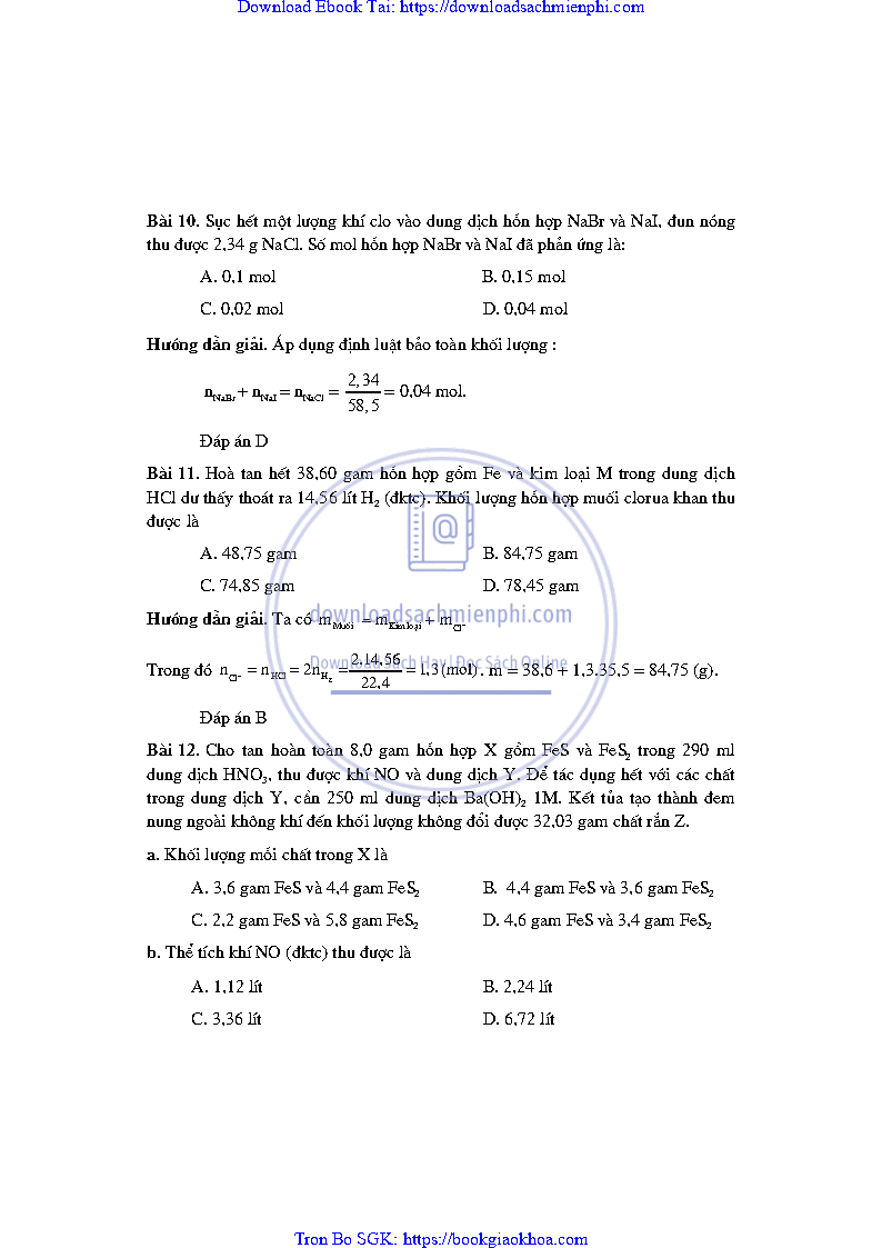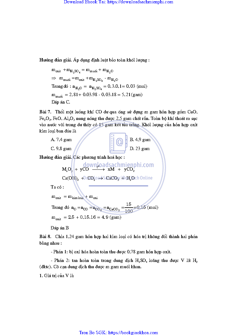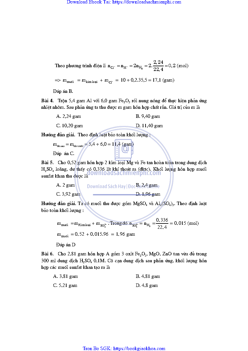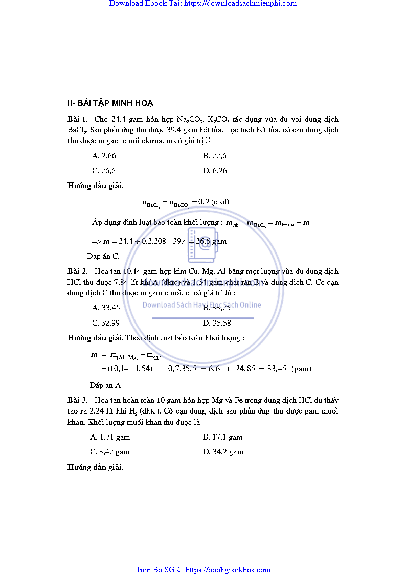 CHUYÊN ĐỀ 1. PHƯƠNG PHÁP ÁP DỤNG ĐỊNH LUẬT BẢO TOÀN KHỐI LƯỢNG