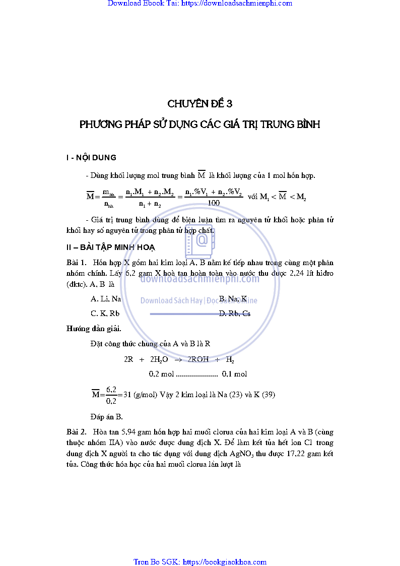- CHUYÊN ĐỀ 3. PHƯƠNG PHÁP SỬ DỤNG CÁC GIÁ TRỊ TRUNG BÌNH