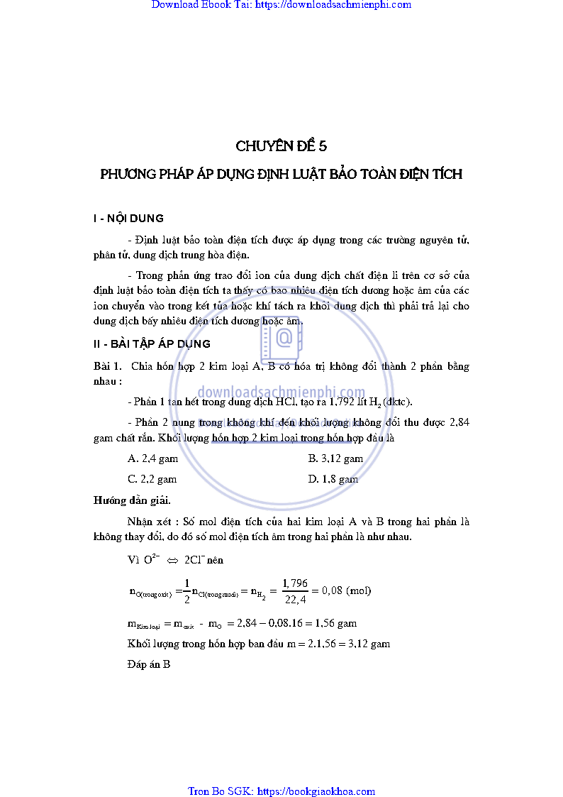 CHUYÊN ĐỀ 5. PHƯƠNG PHÁP ÁP DỤNG ĐỊNH LUẬT BẢO TOÀN ĐIỆN TÍCH