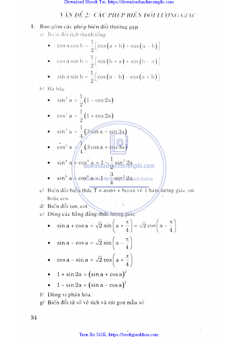 - PHƯƠNG PHÁP 1. CÁC PHÉP BIẾN ĐỔI ĐẠI SỐ – LƯỢNG GIÁC