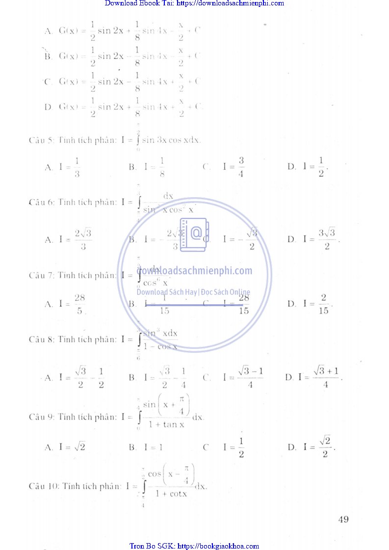 Giải Bài Tập Giải Tích Lớp 12 Chương Trình Chuẩn – Nguyễn Văn Lộc