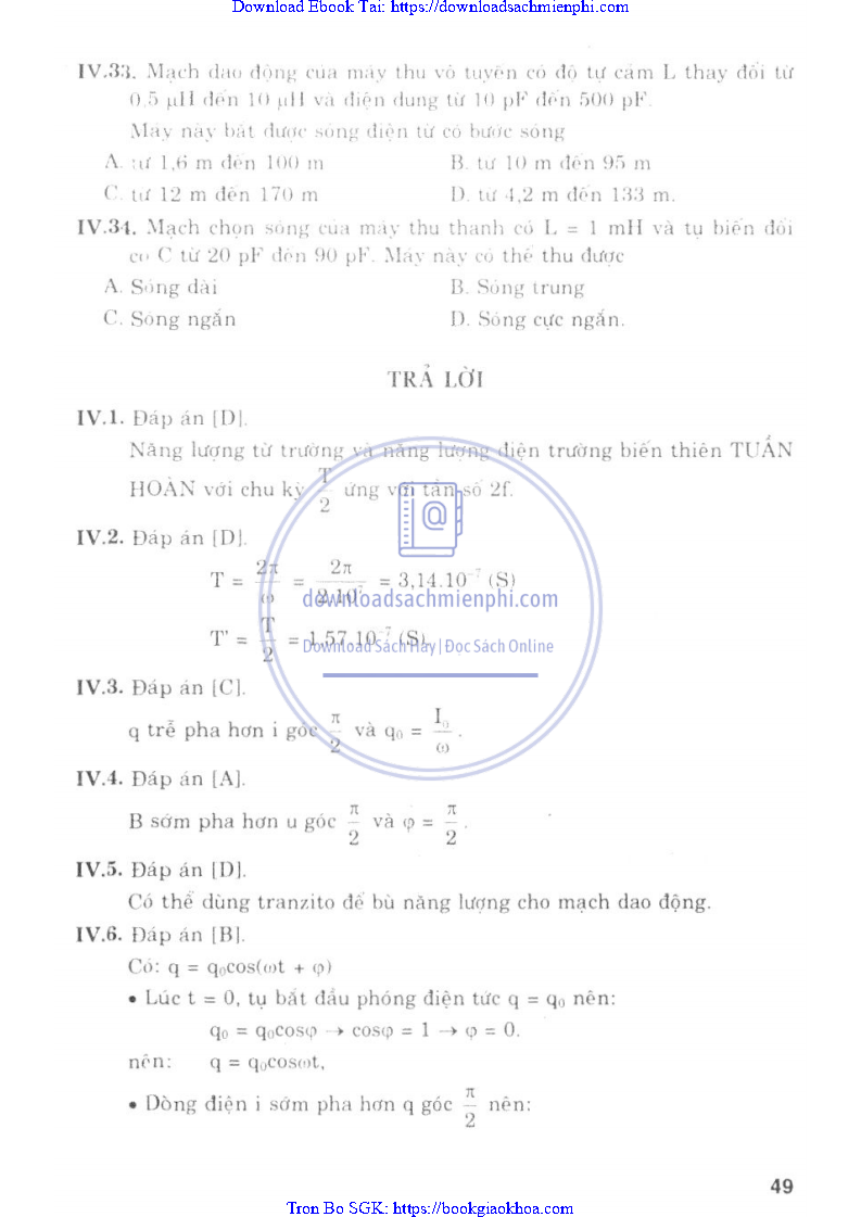CHƯƠNG IV. DAO ĐỘNG VÀ SÓNG ĐIỆN TỪ