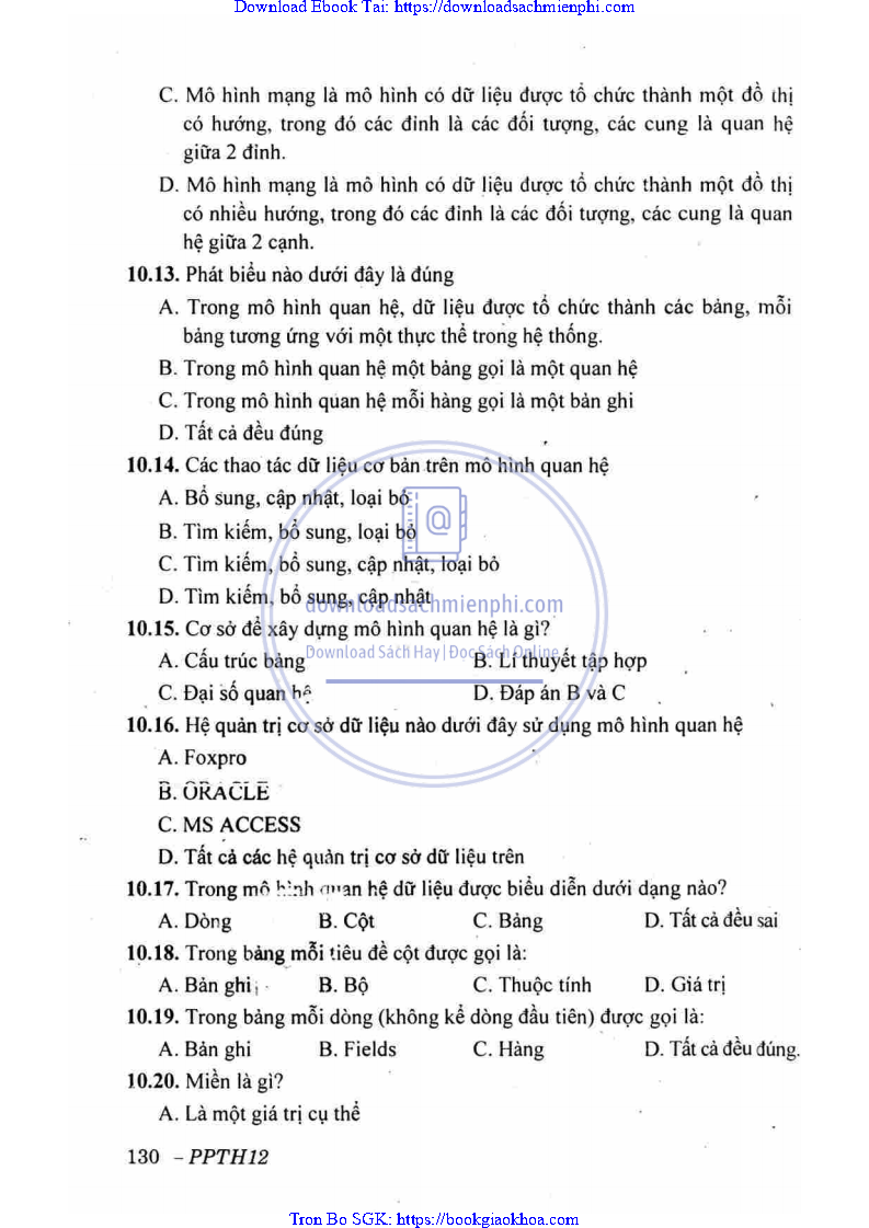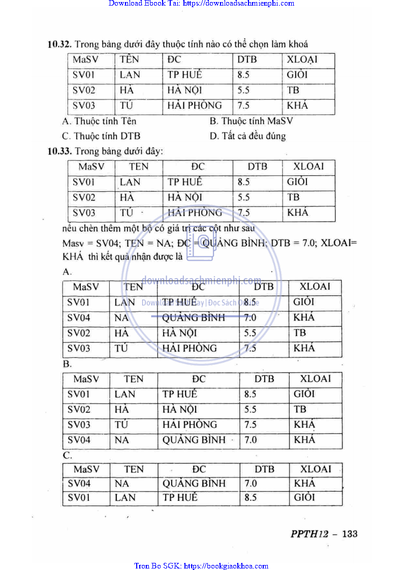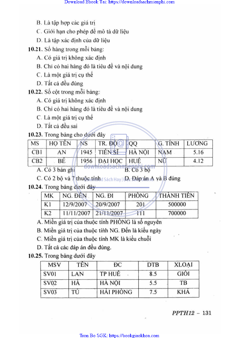 BÀI 10: CƠ SỞ DỮ LIỆU QUAN HỆ