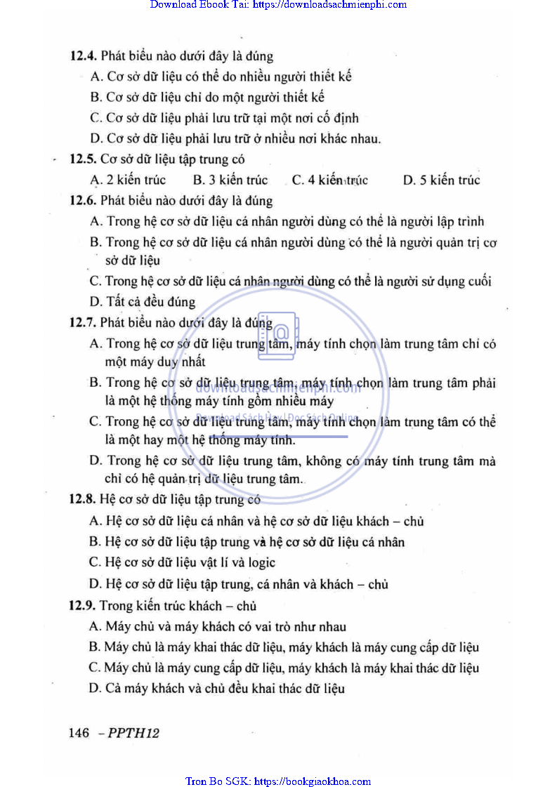 - ĐÁP ÁN VÀ HƯỚNG DẪN GIẢI CHƯƠNG 1. KHÁI NIỆM VỀ CƠ SỞ DỮ LIỆU VÀ HỆ QUẢN TRỊ CƠ SỞ DỮ LIỆU