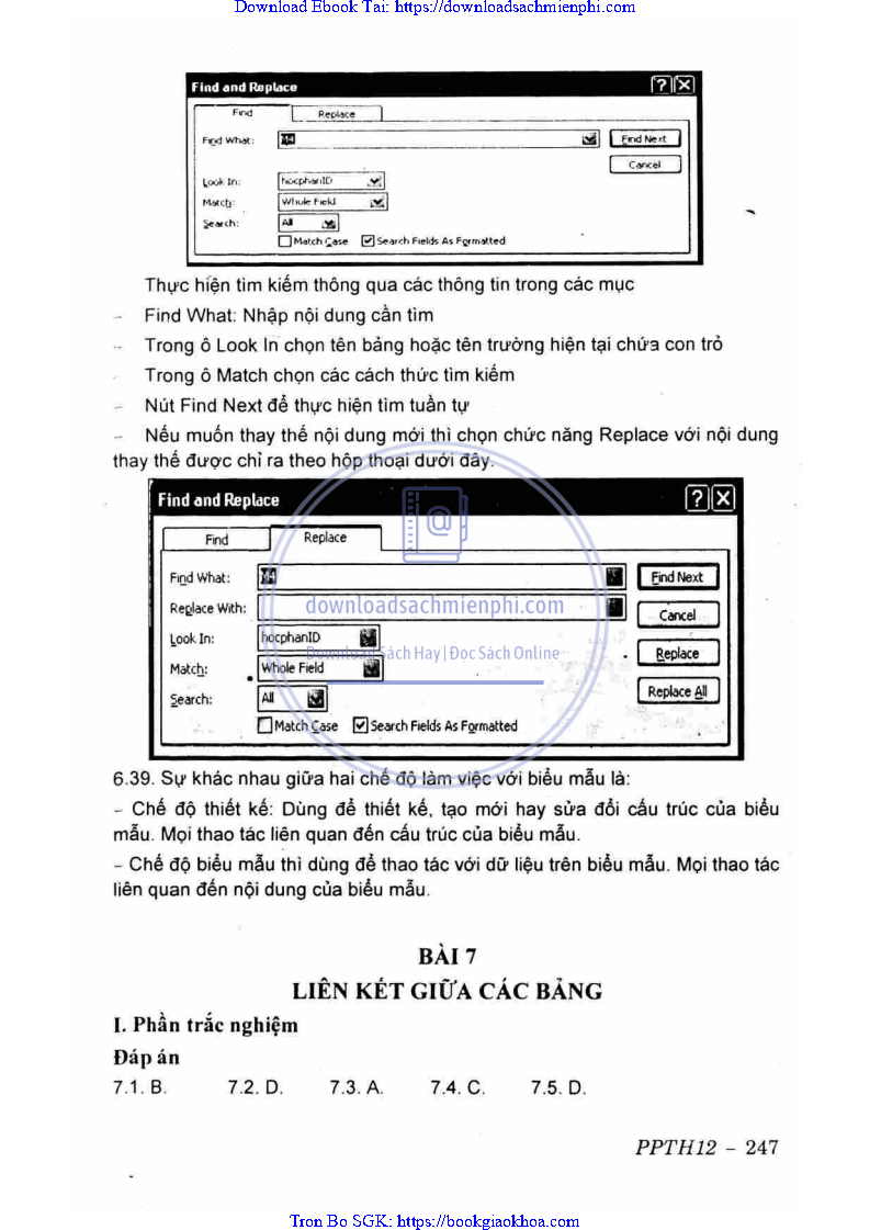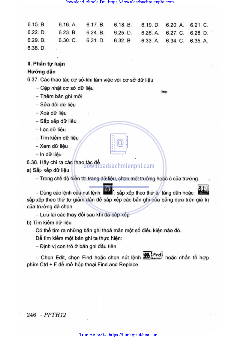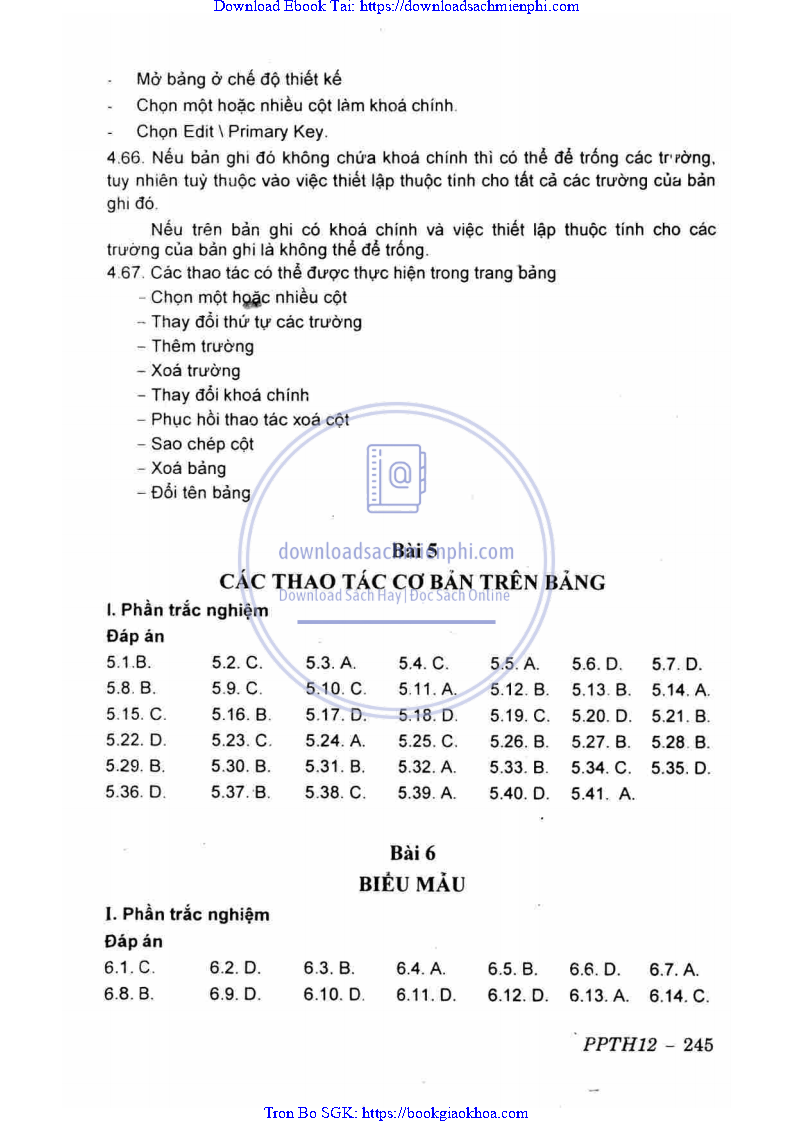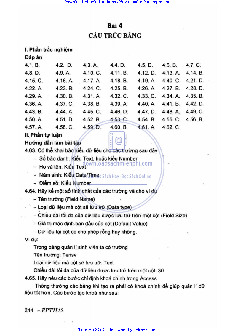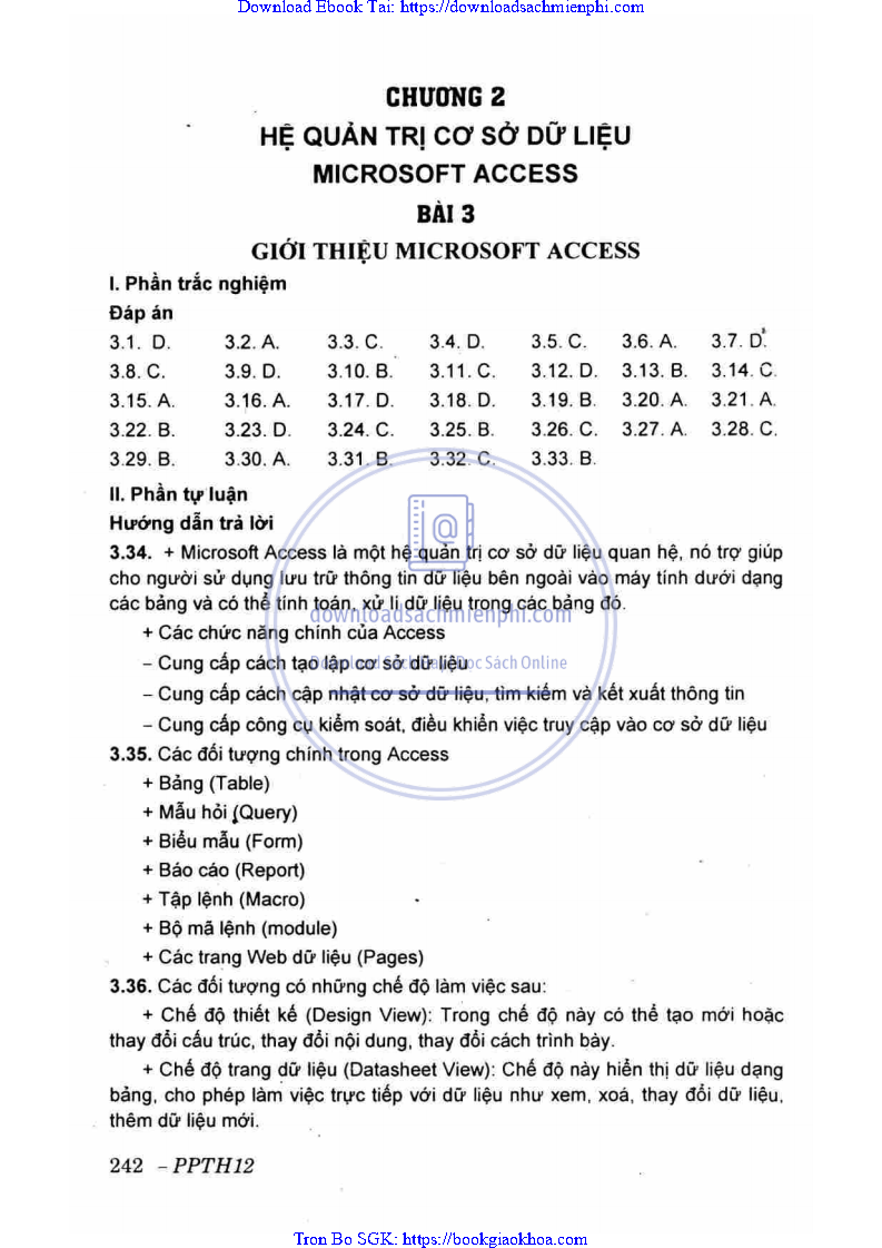 ĐÁP ÁN VÀ HƯỚNG DẪN GIẢI CHƯƠNG 2. HỆ QUẢN TRỊ CƠ SỞ DỮ LIỆU MICROFT ACCESS
