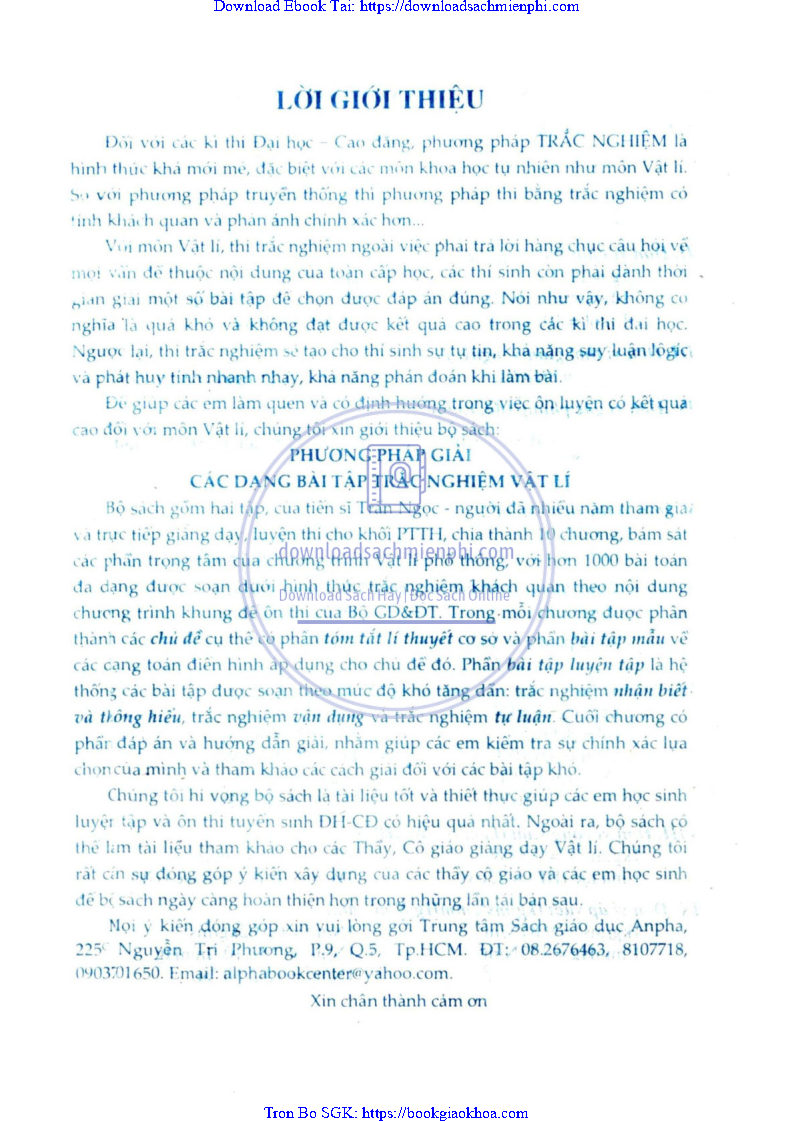 Phương Pháp Giải Các Dạng Bài Tập Trắc Nghiệm Vật Lý Tập 1 – Trần Ngọc