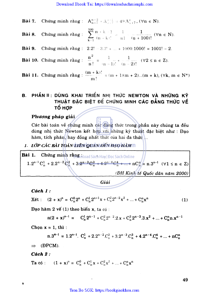 - CHƯƠNG 4: CÁC BẤT ĐẲNG THỨC LIÊN QUAN ĐẾN TỔ HỢP VÀ “NHỊ THỨC NEWTON”