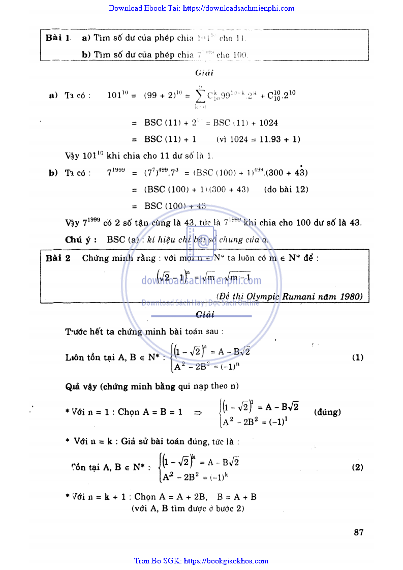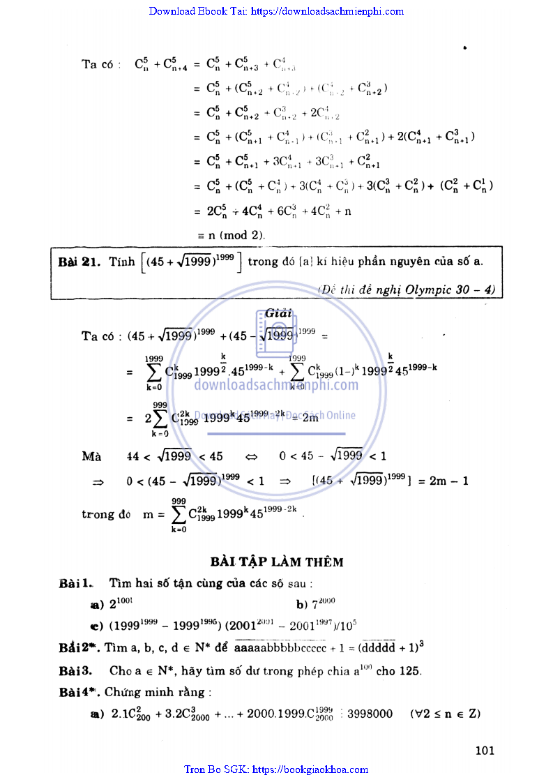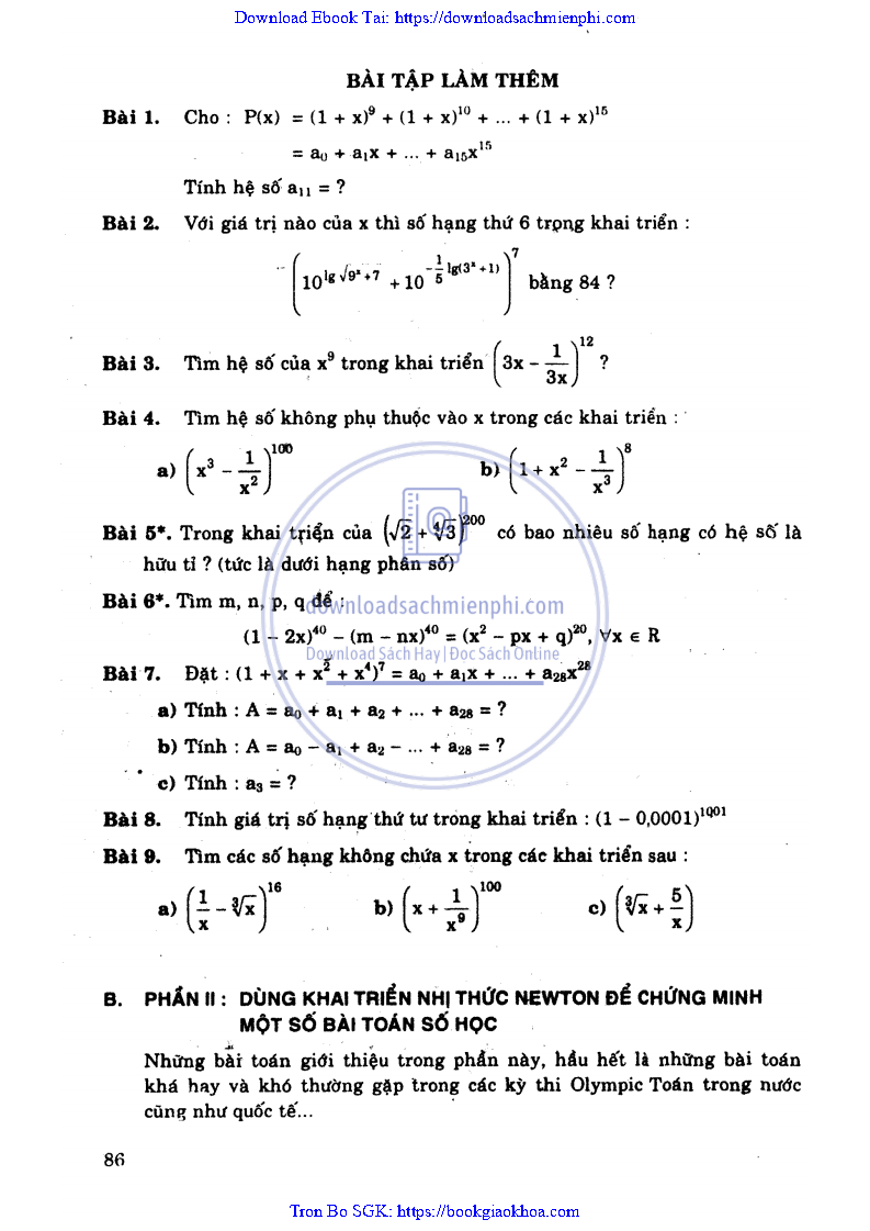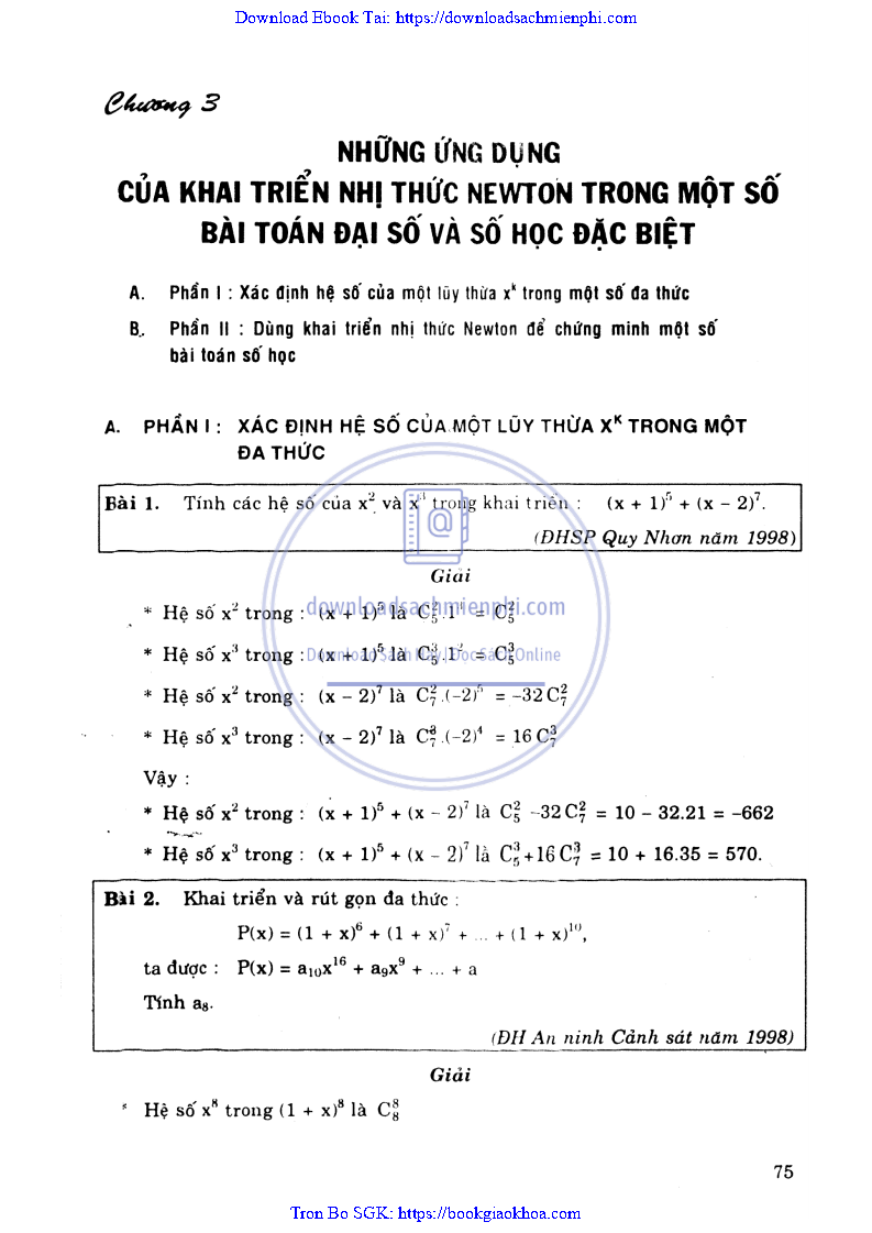 CHƯƠNG 3: NHỮNG ỨNG DỤNG CỦA KHAI TRIỂN NHỊ THỨC NEWTON TRONG MỘT SỐ BÀI TOÁN ĐẠI SỐ VÀ SỐ HỌC ĐẶC BIỆT